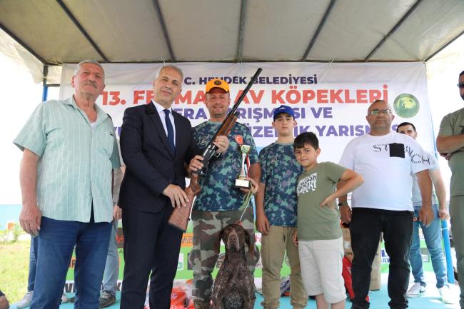 Hendek Belediyesi ile Hendek Avcılar ve Atıcılar Spor Kulübü’nün işbirliğiyle bu yıl Hendek’te 13’ncüsü düzenlenen Fermalı Av Köpekleri Mera Yarışması ve Kovucu Irklar Güzellik yarışması tamamlandı.YOĞUN KATILIM10 -11 Haziran Hendek Çakallık mevkiinde bu yıl 13’ncüsü düzenlenen Fermalı Av Köpekleri Mera Yarışması ve Kovucu Irklar Güzellik yarışması birbirinden renkli görüntülere sahne oldu. 8 ayrı kategoride yapılan yarışmaya yaklaşık 427 avcı köpeğiyle katıldı. Çakallık Mevkiinde özel olarak hazırlanan alanda binlerce avcı ve sporseverlerle birlikte yarışmayı yakından takip eden Hendek Belediye Başkanı Turgut Babaoğlu, şehir içinden ve dışından gelen tüm konuklarla yakından ilgilenerek yarışmada dereceye giren avcılara ve destek veren kuruluşlara plaket ve madalyalarını takdim etti.BAŞKAN BABAOĞLU: SPORUN HER ALANINDA BAŞARILI BİR HENDEKPlaket takdiminin ardından Başkan Babaoğlu yaptığı konuşmada, “ Bu yıl 13’ncüsünü düzenlenen güzel bir organizasyonla daha bir aradayız. Gerek şehir içinden gerek şehir dışından gelen sporseverlerimiz, çocuklarımız ve ailelerimiz burada. Güzel coşkulu bir kalabalık var. İlçemizde böyle etkinliklerin düzenlenmesi hakkında olumlu dönüşler alıyoruz bu da bizi mutlu ediyor. Hendek olarak Futbol, Karate, Güreş, Hentbol ve Avcılık gibi birçok spor dalında kendisinden söz ettiren bir Hendek var. Tüm sporcularımızla gurur duyuyoruz. Hendek Belediyesi olarak bu tür organizasyonların içinde olmaya devam edeceğiz. Bu organizasyonda büyük emeği olan Hendek Avcılar ve Atıcılar Spor Kulübü Başkanı Yavuz Korkmaz ve ekibi başta olmak üzere yarışmada dereceye giren avcılarımıza, destek veren kuruluşlarımıza ve uzak yakın demeden buraya gelerek yarışan tüm yarışmacılara teşekkür ediyorum. Federasyonumuzun, derneklerimizin önemli temsilcileri ile hakemlerimize de ayrıca sonsuz şükranlarımı sunuyorum” dedi.DERECEYE GİREN AVCILAR ŞU ŞEKİLDE;KOVUCU IRKLAR BARAK KATEGORİSİ1. Fatih Ceylan2. Yakup Ceylan3. Cengiz ÇalışkanoğluKOVUCU IRKLAR KOPOY KATEGORİSİ1. Uğur Şahin2.Fatih Şen3. Enes AltıparmakKOVUCU IRKLAR DELİ ORMAN KATEGORİSİ1. Mehmet Çakmakoğlu2. Metin Yaşar3. Mehmet MehmetoğluKOVUCU IRKLAR PİLOT KATEGORİSİ1. Şenol Yurtdaş2. Tugay Özbek3. Gürsel ÇalışkanİNGİLİZ YETİŞKİN1. Berkay Porsuk2. Ahmet Dilek3. Oğuz TömekçeİNGİLİZ GENÇLER1.İlker Tınmaz2. Ahmet DilekKONTİNENTAL YETİŞKİN1. Vedat Duran2. Berat Pehlivan3. Hasan Kekiç4. Enis Naş5. Recep Ali PehlivanKONTİNENTAL GENÇLER1. Kadir Ulutaş2. Enes Çakır3. Osman Yılmaz