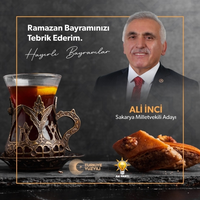 28. Dönem Sakarya Milletvekili Adayı Ali İnci, Ramazan ayı dolayısıyla mesaj yayımladı.Ali İnci yayınladığı mesajda; "Sevdiklerinizle bir arada, sağlık, huzur ve bereket dolu bir bayram dileğiyle. Ramazan Bayramınız mübarek olsun" dedi.