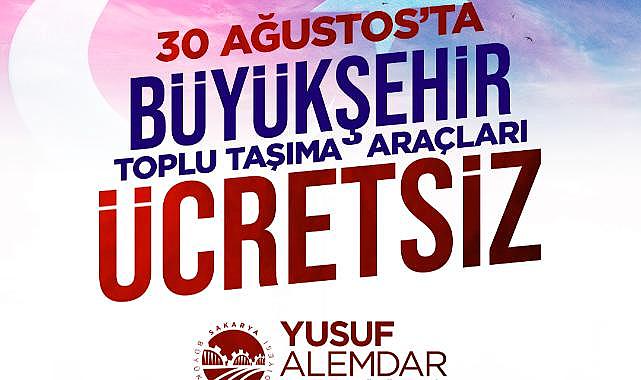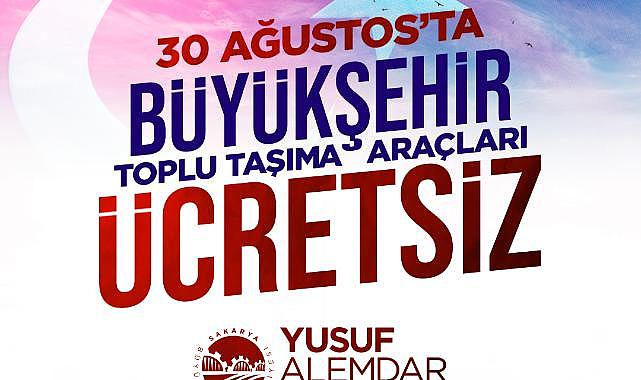 30 Ağustos Zafer Bayramı'nda ulaşım ücretsizBüyükşehir Belediyesi, 30 Ağustos Zafer Bayramı'nda ADARAY, Metrobüs ve belediye otobüslerinin vatandaşlara ücretsiz hizmet sunacağını açıkladı.Sakarya Büyükşehir Belediyesi, her yıl olduğu gibi bu yılda ulusal bayramlarda vatandaşlara ücretsiz ulaşım hizmeti sunmaya devam ediyor.Sakarya'da toplu taşımayı kullanan vatandaşlar, 30 Ağustos Zafer Bayramı'nda ADARAY, Metrobüs ve belediye otobüsleriyle ücretsiz olarak seyahat edebilecek.30 Ağustos Zafer Bayramı kutlu olsunBüyükşehir'den yapılan açıklamada, “30 Ağustos zaferinin yıl dönümünde ADARAY, Metrobüs ve belediye otobüslerimiz vatandaşlarımıza ücretsiz olarak ulaşım hizmeti sağlayacaktır. 30 Ağustos Zafer Bayramı kutlu olsun” ifadeleri yer aldı.
