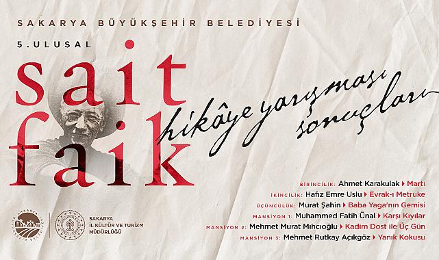 5. Ulusal Sait Faik Hikâye Yarışması’nda kazananlar belli olduBüyükşehir Belediyesi ve Sakarya İl Kültür Turizm Müdürlüğü iş birliğinde gerçekleştirilen 5. Ulusal Sait Faik Hikâye Yarışmasında kazananlar belli oldu. Toplamda 501 başvurunun gerçekleştiği yarışmada,Sakarya Büyükşehir Belediyesi tarafından bu yıl 5.’si düzenlenen Ulusal Sait Faik Hikâye Yarışması’nda kazananlar belli oldu.Yarışmaya 501 başvuru gerçekleşti1906 yılında Adapazarı’nda dünyaya gelen, öykücülüğü ile Türk Edebiyatında önemli bir yer edinmiş olan Sait Faik Abasıyanık’ın anısını yaşatmak, hikâye alanında yapılan çalışmaları desteklemek ve Sait Faik’i genç kuşaklara tanıtmak amacıyla gerçekleştirilen yarışmaya toplamda 501 başvuru gerçekleşti. Bu başvurulardan 53 eser ön elemeyi geçerek ana elemeye kalmaya hak kazandı.Dereceye girenler belli olduModern Türk hikâyeciliğinin öncülerinden olan Sait Faik Abasıyanık’ın anılarını yaşatmak amacıyla gerçekleştirilen yarışmanın konusu bu yıl “Deniz” olurken, seçici kurulun değerlendirmeleri sonrası yarışmada dereceye girenler belli oldu.Yarışmada dereceye giren isimler ve eserler şu şekilde;Birincilik Ödülü: Ahmet Karakulak / Martıİkincilik Ödülü: Hafız Emre Uslu / Evrak-ı MetrukeÜçüncülük Ödülü: Murat Şahin / Baba Yaga'nın GemisiMansiyon ödülü almaya hak kazanan eserler:Mansiyon 1: Muhammed Fatih Ünal / Karşı KıyılarMansiyon 2: Mehmet Murat Mıhcıoğlu / Kadim Dost ile Üç GünMansiyon 3: Mehmet Rutkay Açıkgöz / Yanık Kokusu