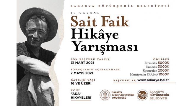 1906 yılında Adapazarı’nda doğan Türk edebiyatının önemli isimlerinden Sait Faik Abasıyanık’ı genç nesillerle tanıştırmayı hedefleyen ‘Ada Hikâyeleri’ konulu hikâye yarışmasıyla ilgili katılımcılar detaylı bilgilere www.sakarya.bel.tr adresinden ulaşabilirler. Yurt içi ve yurt dışından 16 yaş üzeri herkesin katılabileceği yarışmanın seçici kurulunda ise Prof. Dr. Yılmaz Daşcıoğlu, Doç. Dr. Gülsemin Hazer, Yazar Ali Ural, Yazar Ercan Yılmaz ve Büyükşehir Belediyesi Kültür ve Sosyal İşler Dairesi Başkanı Resul Narin yer alıyor.