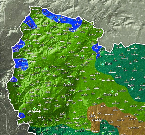 36 NOKTA KURTARILDI: TSK ve operasyonlara destek veren ÖSO güçleri, harekatın başından bu yana PYD/PKK işgalindeki Afrin'in 5 beldesinde 1'i belde merkezi, 23'ü köy, 1'i köy altı yerleşim ve 11'i stratejik dağ veya tepe olmak üzere 36 noktayı örgütten kurtarmış oldu.Terör örgütlerinden temizlenen bu yerleşim birimleri ve stratejik noktalar şöyle:"Bülbül beldesi merkezinin yanı sıra Şengal, Zehran, Bali Köy, Kurni, Hay Oğlu, Heftar, Ursa, Bak Ubasi, Ali Kar köyleri, Huruz Dağı, Darmık Dağı, Kurni Dağı ile Kürdo köy altı yerleşimini, Racu beldesinde Ayn Batman Dağı, Edamanli, Ali Bekki, Bilal Köy, Ömer Uşağı, Mamel Uşağı, Süleyman Halil, Sati Şaği, Alkana ve Kırmızı köyleri, 915. Tepe, 740. Tepe ile 1027. Tepe, Şeyh Hadid beldesinde Şeyh Hadid Tepesi, Kara Mitlak köyü ve Hac Bilal köyü, Cinderes beldesinde Hammam köyü ile Mersides Tepesi'ni, Şeran beldesinde Burseya Dağı, Kastel Cündo ve Dikmetaş köyleri ile Sergaya Tepesi."
