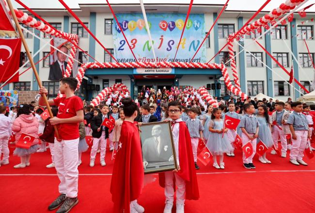 Alemdar miniklerin 23 Nisan coşkusuna ortak oldu: “Tüm çocuklarımızın bayramı kutlu olsun”23 Nisan Ulusal Egemenlik ve Çocuk Bayramı dolayısıyla Arifiye İlkokulu’nda düzenlenen kutlama töreninde miniklerin bayram coşkusuna ortak olan Büyükşehir Belediye Başkanı Yusuf Alemdar, “Geleceğimizi şekillendirecek çocuklarımızın gözlerindeki ışıltının ve yüzlerindeki gülümsemenin hiç eksilmemesini diliyorum. Tüm çocuklarımızın bayramı kutlu olsun” dedi.Sakarya Büyükşehir Belediye Başkanı Yusuf Alemdar, 23 Nisan Ulusal Egemenlik ve Çocuk Bayramı’nda miniklerin bayram coşkusuna ortak oldu.Bayram heyecanı Arifiye’de yaşandıArifiye İlkokulu’nda düzenlenen 23 Nisan etkinliklerine Sakarya Valisi Rahmi Doğan, Sakarya Garnizon Komutanı Piyade Albay Ramazan Sedat Baş, İl Jandarma Komutanı Hasan Erbağ, Sakarya Başsavcısı Hasan Uğurlu, Sakarya Barosu Başkanı Av. Musa Adıyaman, il müdürleri, kaymakamlar, ilçe belediye başkanları, okul müdürleri, öğretmenler, basın mensupları ve veliler katılım sağladı.Şiirler, marşlar ve öğrenci performansları…Saygı duruşu ve İstiklal Marşı’nın okunmasıyla başlayan programda günün önemini belirten konuşma ile devam etti. Şiirler, marşlar, çocuk dansları, öğrenci performansları ve öğrencilerin hazırladıkları yerli ve milli savunma sanayi ürünlerinin maketleri sergiye çıkarıldı.“Yüzlerindeki gülümseme hiç eksilmesin”Çocukların eğlencesine ve sevincine ortak olan Başkan Yusuf Alemdar, “Bugün sevinç ve coşkunun hâkim olduğu özel bir güne uyandık. Çocuklarımızın yüreğinde hissedilen o heyecan ve içten gelen mutluluk, ülkemiz ve şehrimiz için geleceğe dair en güçlü umutlardan biridir. Geleceğimizi şekillendirecek olan çocuklarımızın gözlerindeki ışıltının ve yüzlerindeki gülümsemenin hiç eksilmemesini diliyorum. 23 Nisan Ulusal Egemenlik ve Çocuk Bayramı kutlu olsun” ifadelerini kullandı.Başkan Alemdar ve protokol üyeleri, program boyunca miniklerle hatıra fotoğrafları çekildi.