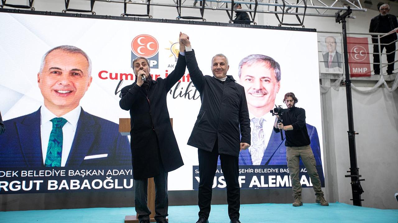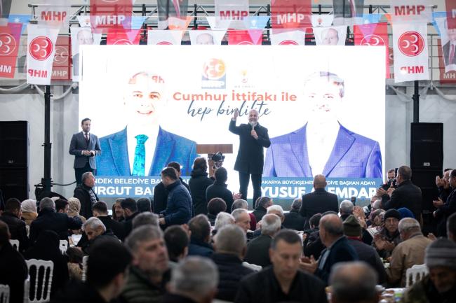 Cumhur İttifakı Hendek Belediye Başkan Adayı Turgut Babaoğlu’nun Yeşilyurt Mahallesi iftar programına katılan Büyükşehir Belediye Başkan Adayı Yusuf Alemdar, “Cumhurbaşkanımız Hendek için kimin elini kaldırmışsa, aday olarak açıklamışsa bizde onun elini kaldırır ve onunla birlikte çalışırız. Burada adayımız Turgut Babaoğlu’dur” dedi.Alemdar, Hendek Belediye Başkanı Turgut Babaoğlu ile birlikte iftar öncesi Yeşilyurt Mahallesi esnafını ziyaret etti. İftar programına katılımda yoğun oldu.Spor salonunda düzenlenen iftar programında AK Parti İl Kadın Kolları Başkanı Yasemin Turan, Milliyetçi Hareket Partisi Hendek İlçe Başkanı Burhan Namlı, AK Parti İlçe Başkanı Adem Öz, Hendek Ülkü Ocakları Başkanı Sıtkı Yaz, AK Parti Hendek Gençlik Kolları Başkanı Ömer İbrahimbaş, MHP Kaçep İlçe Başkanı Zübeyde Gürbüz, AK Parti İlçe Kadın Kolları Başkanı Tülay Ekşi, mahalle muhtarları ve vatandaşlar yer alırken, kalabalığın salona sığmaması üzerine iftar pazaryerine taştı.“31 MART AKŞAMI ZAEFRİMİZİ İLAN EDECEĞİZ”Başkan Babaoğlu, yoğun katılım nedeniyle Yeşilyurt Mahallesi’ne teşekkür ederken, Cumhur İttifakı Büyükşehir Adayı Yusuf Alemdar ise “İnşallah sizlerin desteği ve duasıyla Cumhur İttifakı olarak 31 Mart akşamında zaferimizi ilan edeceğiz. Turgut başkan kimseyi ayırmadan, ayrıştırmadan önemli hizmetler gerçekleştirdi. Yeni dönemde de Hendek için yapılacak çalışmaları birlikte derhal başlatacağız. Turgut başkanımızı ve kendimi sizlere emanet ediyor, sizleri de Allah’a emanet ediyorum” ifadelerini kullandı.