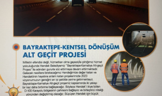 Eski başkan Ali İnci’nin Hendek halkına söz verip yapmadıklarını yazmaya devam ediyoruz. Belediye Sarayı ve 35 bin kişilik stadyum projesinin ardından Bayraktepe-Kentsel Dönüşüm Alt Geçit projesi unutturulanlar arasında yer aldı