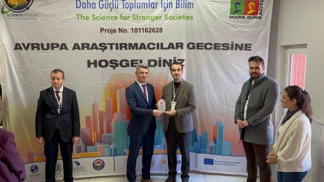 Atike Hanım Anadolu Lisesinde Araştırmacılar Okulda EtkinliğiAraştırmacılar Okulda Etkinliklerinin İkincisi Hendek Atike Hanım Anadolu Lisesinde GerçekleştirildiSakarya Üniversitesinin koordinatörlüğünde gerçekleştirilen Daha Güçlü Toplumlar için Bilim (SCIENCE&FUTURE) projesi kapsamında, 20 Aralık 2024 tarihinde Atike Hanım Anadolu Lisesinde, araştırmacılar okulda etkinliği düzenlendi.Sakarya Üniversitesi ve Atike Hanım Anadolu Lisesi araştırmacılarının ve öğrencilerin başta iklim değişikliği olmak üzere, doğal afetler ve çevre gibi konularda sunum ve atölyeler gerçekleştirdiği etkinlik, proje koordinatörü Prof. Dr. Mehmet Emiroğlu’nun proje hakkındaki açılış konuşmasıyla başladı.Gerçekleştirilen sunum ve atölyelerin ardından Araştırma Dekanı Prof. Dr. Emiroğlu, etkinliğe ev sahipliği yapan Atike Hanım Anadolu Lisesi okul müdürü Recep Yazıcı ve öğretmenlere teşekkür belgelerini sunarken, müdür Yazıcı da teşekkür plaketini Prof. Dr. Emiroğlu’na takdim etti.Etkinlik, toplu fotoğraf çekimiyle sona erdi.