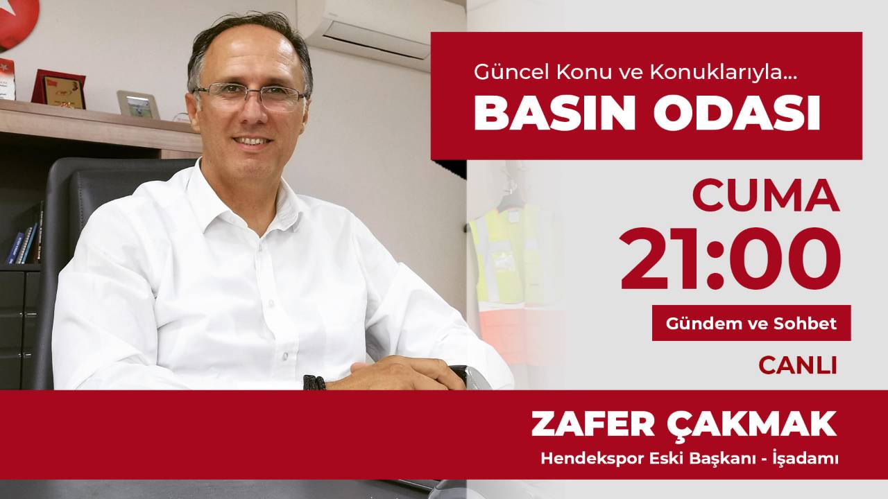 Siyaset, Spor, Eğitim, Sağlık ve İlçe Gündem konularının yer aldığı Basın Odası'nın bu haftaki konuğu Hendekspor eski Başkanlarından İşadamı Zafer Çakmak olacak...
