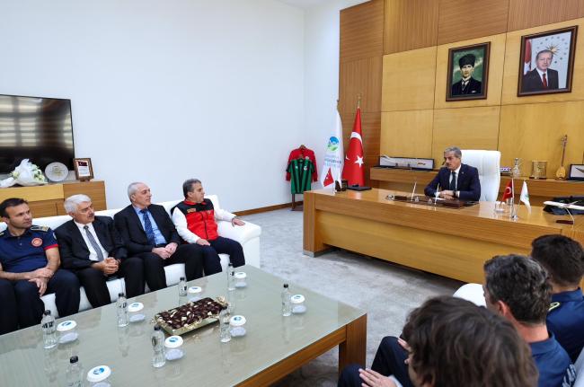 “Özverili çalışmalarınızla gözümüz hiçbir zaman arkada kalmıyor”Büyükşehir Belediye Başkanı Yusuf Alemdar, İtfaiyecilik Haftası kapsamında itfaiye teşkilatını makamında ağırladı. Afetlerde gösterdikleri üstün başarı ve fedakârlık dolu çalışmaları için teşekkür eden Alemdar, "Disiplinli ve güven veren teşkilatımızla gurur duyuyoruz" dedi. Başkan Alemdar ayrıca orman yangınlarıyla ilgili, “Bu süreçte gösterdiğiniz emek, cesaret ve kararlılık için hepinize yürekten teşekkür ediyorum” sözleriyle itfaiyecilerin mücadelesine dikkat çekti.Sakarya Büyükşehir Belediye Başkanı Yusuf Alemdar, 25 Eylül–1 Ekim tarihleri arasında kutlanan İtfaiyecilik Haftası münasebetiyle İtfaiye Dairesi Başkanı Vedat Selamet ve beraberindeki itfaiye mensuplarını makamında ağırladı.İtfaiye teşkilatının özverili, disiplinli ve başarılı çalışmalarını takdir eden Başkan Alemdar, tüm teşkilatın yaptığı işi sadece görev bilinciyle değil, aynı zamanda fedakârlıkla yerine getirdiğini ifade etti.İtfaiye teşkilatımıza güveniyoruzİtfaiye teşkilatının ‘İtfaiye Haftasını’ kutlayan Başkan Yusuf Alemdar, “İtfaiye teşkilatımız, deprem, sel ve yangın gibi afetlerde gösterdiği üstün başarılarla yalnızca şehrimizde değil, tüm Türkiye’de takdir topluyor Bugüne kadar şehrimizde gösterdiğiniz özverili ve fedakâr çalışmalarınızdan dolayı hepinizi tebrik ediyorum. Gözümüz arkada değil çünkü disiplinli, donanımlı ve güven veren bir teşkilata sahibiz. Bu güven hem bizleri hem de vatandaşlarımızı rahatlatıyor” dedi.Emek, cesaret ve kararlılıkları için teşekkürBaşkan Alemdar ayrıca yaz aylarında yaşanan büyük orman yangınları sırasında gösterilen çabaları bizzat gördüğünü belirterek, “Yaz aylarında yaşadığımız büyük orman yangınlarında da sizlerin nasıl fedakârca mücadele ettiğinize bizzat şahit oldum. Zor günleri el birliğiyle atlattık. Bu süreçte gösterdiğiniz emek, cesaret ve kararlılık için hepinize yürekten teşekkür ediyorum” dedi.7/24 hazırızİtfaiye Dairesi Başkanı Vedat Selamet ise teşkilat bünyesindeki tüm itfaiye erlerinin disiplinli, fedakar ve özverili çalışmasının devam edeceğini belirterek olası afetlere karşı vatandaşların can ve mal güvenliğini korumak için 7/24 hazır olduklarını kaydetti.