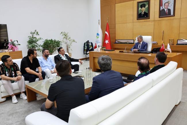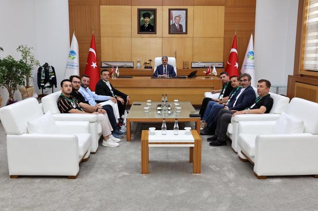 Sakaryaspor Kulüp Başkanı Gökhan İn ve yönetimini makamında ağırlayan Başkan Yusuf Alemdar, “Yeşil ve siyah bu şehrin en büyük markası, Sakaryaspor şehrimizin en önemli sivil toplum kuruluşudur. Sakaryaspor’un her zaman yanındayız. Gittiğimiz her yerde Sakaryasporumuzla övünürüz. Galip gelince sevinir, yenilince üzülürüz. Bu sezonda da takımımıza başarılar diliyorum” dedi.Sakarya Büyükşehir Belediye Başkanı Yusuf Alemdar, Sakaryaspor Kulüp Başkanı Gökhan İn ve yönetimini makamında ağırladı.Teknik Direktör Suat Kaya’nın da yer aldığı buluşmada nazik ziyaretleri için Başkan İn ve yönetimine teşekkür ederek yeni sezon hedeflerinde başarılar diledi.Kenetlenme vurgusuSakaryaspor Kulüp Başkanı Gökhan İn, “Manevi olarak sizlerin desteğinizi hissetmekten duyduğumuz memnuniyeti ifade ediyorum. Tüm şehir yeşil ve siyahın etrafında kenetlenirse Sakaryaspor’umuzun yarınları da güzel olacaktır” ifadelerini kullandı.Başkan Alemdar ise Sakaryaspor’un hep yanında olduklarını ifade ederek, yeşil siyah renklerin bu şehrin en büyük markası olduğunu belirtti.Başarı temennisiAlemdar, “Allah hayırlı etsin. Kısa zaman önce Adana’da büyük bir üzüntü yaşadık. Çok istediğimiz Süper Lig hedefine ulaşamadık. Biz hep Sakaryaspor’un yanında olduk. Yeşil-siyahlı takımımızla ilgili duruşumuz hiç değişmedi. Sakaryaspor şehrimizin markası, en büyük sivil toplum kuruluşudur. Sakaryaspor’un her zaman yanındayız. Gittiğimiz her yerde Sakaryasporumuzla övünürüz. Galip gelince sevinir, yenilince üzülürüz. Bu sezonda da takımımıza başarılar diliyorum” dedi.