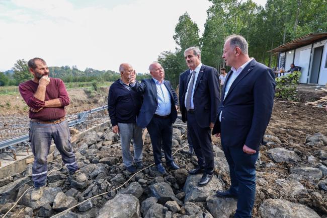 Akyazı’da hizmet ve yatırımlar bir bir tamamlanıyorAkyazı’da Yeniorman Köprüsü, Yahyalı bağlantı yolu ve Kızılelma Millet Bahçesi’ndeki çalışmaları inceleyen Başkan Alemdar, asfalt işlemlerinin tamamlandığı mahallelerde vatandaşlarla buluştu. Alemdar, “İlçe belediyemizle birlikte hizmet ve yatırımları bir bir tamamlıyor, hemşehrilerimizin taleplerini çözüme kavuşturuyoruz. Yeni ulaşım aksları, asfalt çalışmaları, yeni yaşam alanları ve köprü gibi yatırımlarla Akyazı’yı daha da iyi bir noktaya taşıyacağız” dedi.Sakarya Büyükşehir Belediye Başkanı Yusuf Alemdar, ilçeleri tek tek gezerek şehrin adeta röntgenini çektiği ziyaretleri kapsamında son olarak Akyazı’ya gitti.Yoğun katılımVatandaşlarla bir araya gelen Başkan Alemdar, Yeniorman Köprüsü, Yahyalı Bağlantı Yolu, Kızılelma Millet Bahçesi’nde devam eden çalışmaları inceledi.Ziyaretlere ayrıca Akyazı Belediye Başkanı Bilal Soykan, Genel Sekreter Yardımcısı Aslan Yılmaz, AK Parti Akyazı İlçe Başkanı Mesut Ekrem, MHP Akyazı İlçe Başkanı Soyhan Sofuoğlu, Akyazı Muhtarlar Derneği Başkanı Ahmet Savaş, meclis üyeleri ve mahalle muhtarları yer aldı.Projeleri inceledi, bilgiler aldıİlk durağında yapımı devam eden köprü, millet bahçesi ve yol çalışmalarını inceleyen Başkan Alemdar, son duruma ilişkin teknik bilgiler aldı.Yol, köprü, millet bahçesi projeleri…Başkan Alemdar ilçede devam eden çalışmaları şöyle özetledi: “Akyazı ve Hendek ilçelerimizi birbirine bağlayan aynı zamanda 20 mahallenin kesintisiz ulaşım sağlayacağı Yeniorman Köprüsü’nde çalışmalarımız devam ediyor. 70 bin metrekare alana inşa edilen ve temel betonu tamamlanan içerisinde çocuk oyun alanları, millet kıraathanesi, amfi tiyatro, spor, piknik ve sosyal yaşam alanlarının yer alacağı Millet Bahçesi hızla tamamlanıyor. Düzyazı ve Yuvalak ile yan güzergahlarda toplam da 6 bin 100 metrelik asfalt çalışmasını tamamladık. Harunusta ve Hasanbey’de toplamda 10 kilometrelik sıcak asfalt serimini bitirdik” ifadelerini kullandı.“Hizmet için durmadan çalışıyoruz”Birlik, beraberlik ruhunu güçlendirerek, kimseyi ayrıştırmadan Sakarya için kenetlendiklerini kaydeden Alemdar şöyle dedi: “En önemlisi de 16 ilçemizde adil ve eşit hizmet anlayışıyla çalışmalarımıza devam ediyoruz. Gençlerimiz için 16 ilçemize spor tesisleri, futbol, basketbol ve voleybol sahaları, kapalı spor salonları, yüzme havuzları, vatandaşlarımızın sosyal hayatına katkı sunacak Sosyal Gelişim Merkezleri, Millet Bahçesi projeleri başta olmak üzere birçok çalışmayı başlattık. Gayemiz yaşama dokunmak, memlekette faydalı izler bırakmaktır” dedi.“Başkanımızla ihtiyaçlara cevap üretiyoruz”Akyazı Belediye Başkanı Bilal Soykan, “Büyükşehir Belediye Başkanımız Yusuf Alemdar’a teşekkür ediyorum. Birlik ve beraberlik içerisinde çalışmaya devam ediyoruz. İhtiyaçlarımız zamanın şartlarına göre değişiyor. Bizlerde sayın başkanımızla birlikte bu ihtiyaçlara cevap vermeye çalışıyoruz. Özellikle grup yollarımızdaki asfalt çalışmaları için Yusuf başkanımıza teşekkür ediyorum. İnşallah eksiklerimizi birlikte tamamlayacağız.” dedi.Ayrıca vatandaşlarla bir araya gelen, onları dinleyen, talepleri tek tek not alan Alemdar, çözüm için ekiplere talimatlarını verdi.