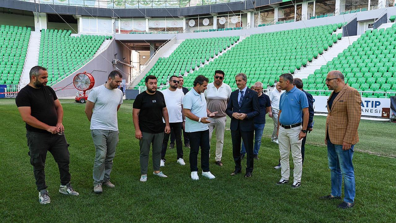 Büyükşehir Belediye Başkanı Yusuf Alemdar, Sakarya Atatürk Stadyumu’nda devam eden çalışmaları yerinde inceledi. Son duruma ilişkin bilgiler alan Alemdar, işlemlerin kısa süre içerisinde tamamlanacağını ifade ederek, yatırım mesajı verdi: “Sakarya’ya yeni sahalar, spor salonları, yüzme havuzları kazandırmak için bakanlığımızla çalışmalarımızı başlattık” dedi.Sakarya Büyükşehir Belediye Başkanı Yusuf Alemdar, Gençlik ve Spor Bakanlığı Yatırım ve İşletmeler Genel Müdür Yardımcısı Ayhan Kardan ile birlikte Sakarya Atatürk Stadyumu’nu ziyaret ederek devam eden bakım çalışmalarını yerinde inceledi.Sakarya’ya yatırım için Ankara temaslarıAlemdar’a ayrıca Gençlik ve Spor İl Müdürü Nevzat İnanç, Gençlik ve Spor Hizmetleri Dairesi Başkanı Orhan Bayraktar ile bakım çalışmalarında görevli mimar ve mühendis ekibi eşlik etti.Stadyumdaki çim alanı ve diğer birçok bölümde yürütülen bakım ve onarım çalışmasının en kısa sürede tamamlanacağını söyleyen Alemdar, ilçelere yeni futbol sahaları, spor salonları, yüzme havuzları kazandırmak için Ankara’da bakanlıklarla sürekli temas halinde olduklarını vurguladı.“İlçelerimize yeni spor tesisleri, spor salonları yapmayı hedefliyoruz”Sakarya’ya yeni yatırım mesajları veren Başkan Alemdar, “Bakanlığımızla birlikte şehrimizin her yerinde spor alanları inşa edecek, yeni sporcular yetişmesine katkılar sunacağız. Gençlerimiz sporla buluşsun, farklı alanlarda sporcular yetişsin istiyoruz, bunun için de tesisleşmenin önemini biliyoruz. Stadımızın bakımı tamamlanırken şehrimizde de yeni sahalar, spor salonları ve yüzme havuzları kazandırmak için bakanlığımızla birlikte çalışma başlattık. Sakarya’nın her ilçesine vatandaşlarımızın kolaylıkla ulaşabileceği spor alanlarını kazandırmak istiyoruz” dedi.