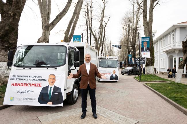 Hendek Belediyesi’nin araç filosunu güçlendirmeye devam ettiklerini söyleyen Hendek Belediye Başkanı Turgut Babaoğlu, “Yeni nesil, daha ekonomik ve çevre dostu araçları filomuza dâhil ederek, gücümüze güç katıyoruz” dedi.Hendek Belediye Başkanı Turgut Babaoğlu, Isuzu marka 2024 model 2 adet çöp kamyonunu teslim alarak, belediye envanterine yazdırdı.“BÜYÜK BİR İLÇEYİZ, 91 MAHALLEMİZE HİZMET EDİYORUZ”Belediye önünde düzenlenen araç teslim töreninde konuşan Başkan Babaoğlu, “Yeni nesil, daha ekonomik ve çevre dostu 2 adet çöp kamyonunu temizlik işleri hizmetlerine dahil ettik. Büyük bir ilçeyiz ve 91 mahallemiz var. Temizlik hizmetlerinin daha etkin, hızlı ve verimli şekilde olmasını sağlayıcı önemli bir adım atarak, araç sayımızı arttırdık. Hendek’imize hayırlı olsun. Rabbim, kazasız belasız hizmetler vermeyi nasip etsin” dedi.“DAHA ÖNCE DE 14 ARAÇ VE İŞ MAKİNASI ALDIK”Babaoğlu yine dönem içerisinde belediyenin öz kaynaklarıyla satın 6 adet kamyonet, 4 adet kamyon, 2 adet otobüs ile paletli ve mini paletli ekskavatörleri de belediye araç filosuna kattıklarını ifade etti.‘MİLLİ OTOMOBİL TOGG’ MAKAM ARACI OLACAKGeçtiğimiz günlerde milli otomobil TOGG’u da belediyenin araç filosuna kattıklarını hatırlatan Başkan Babaoğlu, “İnşallah TOGG’u 1 Nisan’dan itibaren makam aracı olarak kullanmaya başlarız” dedi.Satın alınan son model 2 adet çöp kamyonu, Temizlik İşleri Müdürlüğü bünyesinde hizmet verecek.