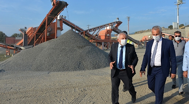 GÜÇLÜ HİZMETE, ÜRETİM DESTEĞİŞantiye sahasında kurulan yeni taş kırma ve eleme tesisinde incelemeler yapan Hendek Belediye Başkanı Turgut Babaoğlu, “Mahallelerimizde yürütülen alt ve üst yapı çalışmalarında kullanılan 5 ayrı boyutta malzemenin üretimini yapıyoruz. Artan kapasite ve malzeme çeşitliliğiyle Hendek kazanıyor” dediTAŞ KIRMA VE ELEME TESİSİHendek Belediye Başkanı Turgut Babaoğlu, belediye şantiye sahasında kurulan yeni kurulan taş kırma ve eleme tesisinde incelemeler yaparak bilgiler verdi. Kilitli parke, bordür, büz ve birçok hizmette kullandığı malzemeyi kendisi üreten Hendek Belediyesi, taş kırma ve eleme tesisinde artan kapasitesi ile hizmete dönüşen üretim gücünü arttırdı. Daha önceden 3 türde malzeme üretimi yapılan taş kırma ve eleme tesisinde yapılan yeni yatırımlarla birlikte artık 5 ayrı malzeme üretilerek, temin ediliyor. Bu yatırımlarla dışarıdan malzeme teminin tamamen ortadan kaldırılması hedefleniyor.KENDİ MALZEMESİNİ ÜRETİYORÇalışmaları anlatan Başkan Babaoğlu, “Yeni taş kırma ve eleme tesisimiz; taş tozu, 1-2 ve 3 numaralı mıcır ve tüvenen malzeme olmak üzere 5 ayrı boyutta üretim yapıyor. Caddelerde, sokaklarda, mahallelerde ve tüm yatırımlarımızda kullandığımız malzemenin ana kaynağı burası. Asfalt alt yapı, kilitli parke, stabilize yol bakım ve yağmur suyu hattı çalışmalarında kullandığımız malzemelerde artık hiçbir sıkıntı yaşanmayacak.” diye konuştu.HENDEK KAZANIYORHer gün üreten, gelişen ve sürekli değişen bir Hendek olduğunu anlatan Başkan Babaoğlu, “Alt ve üst yapıda tüm ihtiyaçlarımıza cevap veren yeni taş kırma ve eleme tesisini faaliyete geçirdik. Artan kapasite ve malzeme çeşitliliğiyle Hendek kazanıyor. Bu tesiste bin 500 ile 2 bin ton arası malzeme üretilmektedir” diye konuştu. Başkan Babaoğlu daha sonra diğer üretim alanlarında yapılan çalışmaları inceledi.