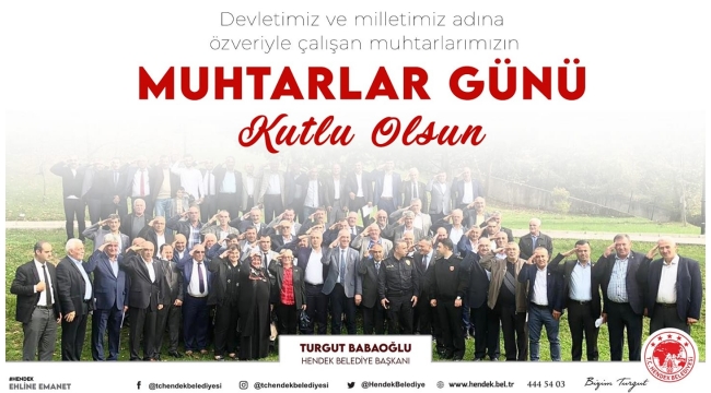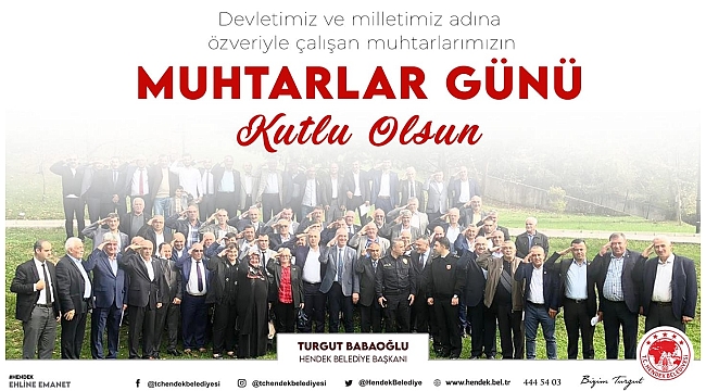 Hendek Belediye Başkanı Turgut Babaoğlu yayınladığı mesajla 19 Ekim Muhtarlar Gününü kutladı.