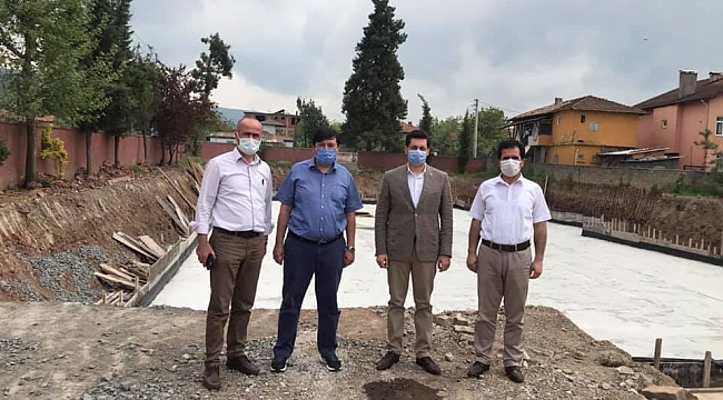 Başkan Baykal, İlçe Milli Eğitim Müdürü Sabri Doğan ve İl Milli Eğitim Şube Müdürü Fatih Arduç ile Ziya Gökalp İlkokulunun inşaat alanını gezerek, bilgiler aldı.