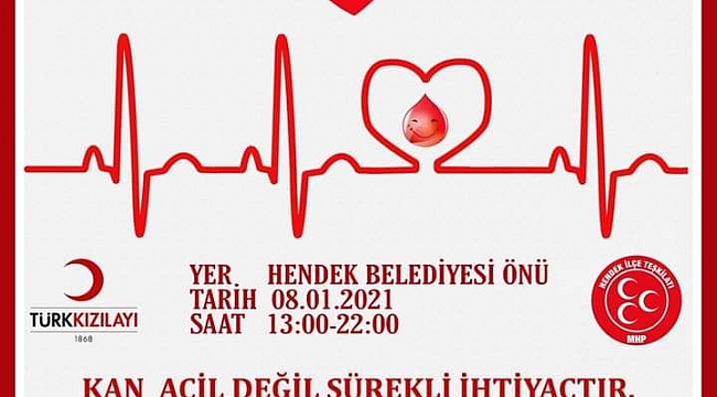 MHP Hendek İlçe Başkanı Burhan Namlı sosyal medya hesabından yaptığı paylaşımla, MHP Üyelerini ve Hendek halkını kan vermeye davet etti.