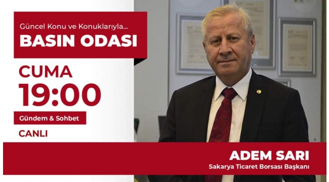 Hendek''in 1 haftalık gündemi Hendek TV de yayınlanan Basın Odası Programında. Sakarya Ticaret Borsası Başkanı Adem Sarı, Cuma akşamı ,Basın Odasına misafir oluyor.