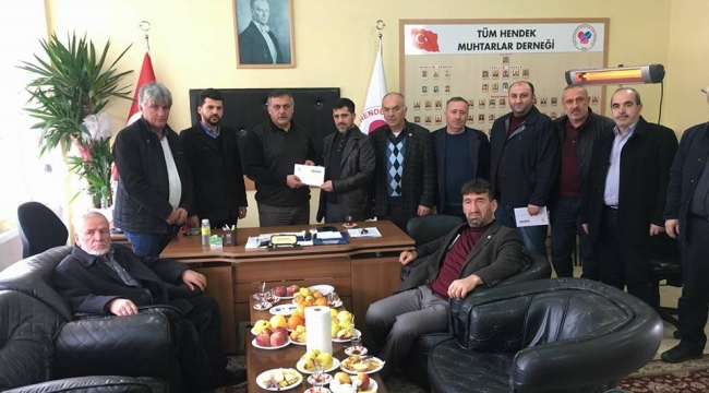 Başkan Ali Kemal Sofu, son olarak Hendek Tüm Muhtarlar Derneğine giderek Dernek Başkanı Emin Kula ve Muhtarlara İl Kongresi için Davetiyelerini verdi.