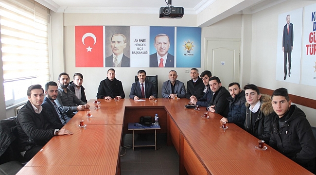 Hendek Milli Türk Talebe Birliği (MTTB) Başkanı Aykut Çaçur ve yönetimi, Hendek Belediye Başkan Adayı olan Ali Kemal Sofu’ya “Hayırlı Olsun” Ziyaretinde Bulundu. MTTB Başkan ve yönetimi Ak Parti Hendek İlçe Teşkilatına gelerek Başkan adayı Ali Kemal Sofu ile görüştüler. Görüşmede ittifaklar üzerine konuşmalar yapıldı.