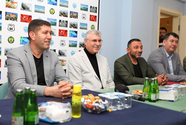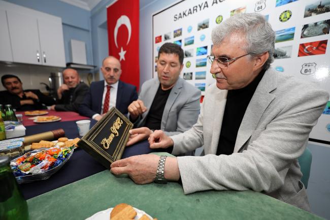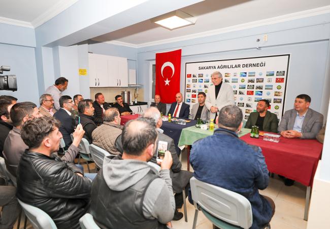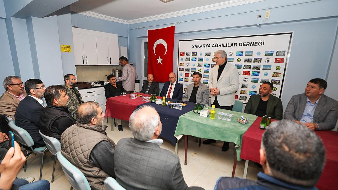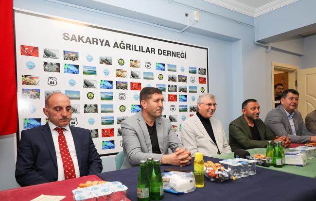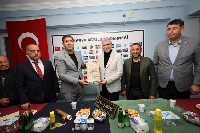 Sakarya Ağrılılar Derneği ziyaretinde konuşan Başkan Ekrem Yüce, “Bugüne kadar milletimizin desteği ve duasıyla hizmetlerimizi en iyi şekilde sürdürdük. İnşallah milletimiz Türkiye Yüzyılı hedeflerinin önünü kesmek isteyenlere gereken cevabı sandıkta verecek, doğru adam liderliğinde eser ve hizmet yolculuğunu sürdürecektir” dedi. Sakarya Ağrılılar Derneği üyeleri aldıkları karar ile Başkan Ekrem Yüce’yi fahri hemşerileri olarak ilan etti.Sakarya Büyükşehir Belediye Başkanı Ekrem Yüce, Sakarya Ağrılılar Derneğini ziyaret etti. Erenler Belediye Başkanı Fevzi Kılıç, AK Parti Erenler İlçe Başkanı Erdal Köse ve İlçe Gençlik Kolları Başkanı Halit Yaylalı ile birlikte Ağrılılar Derneği Başkanı Mehmet Berke ve dernek üyeleriyle bir araya gelen Başkan Yüce, Cumhurbaşkanı Erdoğan’ın emaneti olan Ağrı’ya, Ağrılılara katkı sağlamaya devam edeceklerini ifade ederek, kardeş şehir Ağrı’da yapılan çalışmalardan bahsetti.Ağrılılardan Başkan Yüce’ye fahri hemşerilik beratıSakarya Ağrılılar Derneği üyeleri aldıkları karar ile Başkan Ekrem Yüce’yi fahri hemşerileri olarak ilan etti. Fahri Hemşerilik beratını takdim eden Dernek Başkanı Mehmet Berke, Ağrı’ya, Ağrılılara gösterdiği yakın ilgi ve destekleri dolayısıyla Başkan Ekrem Yüce’ye teşekkür etti. Yüce, fahri hemşerilik beratını ömrü boyunca taşıyacağını ifade ederek, duygularını paylaştı ve Ağrı’nın gönlünde ayrı bir yerde olmaya devam edeceğini dile getirdi.Kardeş şehir Ağrı ile güçlü bağlarımız varSakarya Ağrılılar Derneği Başkanı Mehmet Berke ve dernek üyelerine nazik ev sahiplikleri için teşekkür eden Başkan Yüce, “Ağrılı kardeşlerimle bir arada olmaktan büyük mutluluk duyuyor, dua ve destekleriyle güç katan, güzel düşünceleriyle motivasyonumuzu artıran Ağrılı kardeşlerime şükranlarımı sunuyorum. Hamdolsun kardeş şehrimiz Ağrı ile kardeşlik bağımızı her daim diri tutuyor, birlik ve beraberlik içerisinde hareket etmeye devam ediyoruz” dedi.Ağrılılar kararını vermişYüce, 21 yıllık süreçte millete hizmet yolculuğunun doludizgin devam ettiğini ifade ederek, “Kazanımlarımızın devamı, ülkemizin istikrarı, geleceğimizin teminatı için 14 Mayıs’ta sandığa gideceğiz. Bugüne kadar milletimizin desteği ve duasıyla en iyi şekilde hizmetlerimizi sürdürdük. İnşallah milletimiz Türkiye Yüzyılı hedeflerinin önünü kesmek isteyenlere gereken cevabı verecek, doğru adam liderliğinde eser ve hizmet yolculuğunu sürdürecektir. Bugün Ağrılı kardeşlerimin kararını verdiğini de gördük. Rabbim hayırlı eylesin” diye konuştu.