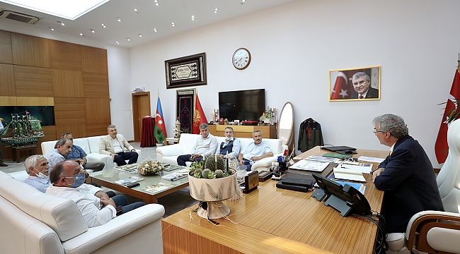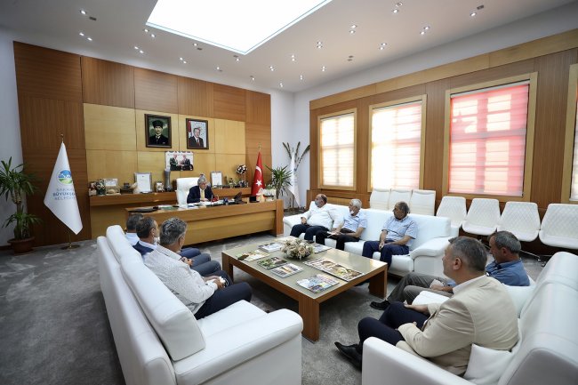 “Muhtarlarımızla sürekli diyalog halindeyiz”Serdivan Muhtarlar Derneği Başkanı Fikret Can ve Serdivanlı muhtarları makamında ağırlayan Başkan Ekrem Yüce, “Muhtarlarımızla sürekli diyalog halindeyiz. Vatandaşlarımızdan gelen talepleri muhtarlarımızdan dinliyor ve en hızlı şekilde çözüme kavuşturuyoruz. Bu iş birliğiyle daha nice güzel hizmetleri şehrimizle buluşturacak ve yarınlara güçlü bir şekilde taşıyacağız” dedi.Sakarya Büyükşehir Belediye Başkanı Ekrem Yüce, Serdivan Muhtarlar Derneği Başkanı Fikret Can ve Serdivanlı muhtarları makamında ağırladı. Muhtarların dilek ve taleplerini dinleyen Başkan Ekrem Yüce, şehrimiz ve ilçemiz için en hayırlı hizmetleri vatandaşlarımızla buluşturmaya çalıştıklarını söyledi. Serdivan Muhtarlar Derneği Başkanı Fikret Can ise yapılan hizmetlerden dolayı büyük memnuniyet duyduklarını ifade ederek Serdivanlı muhtarlar adına teşekkür etti.Muhtarlarımızla diyalog halindeyizNazik ziyaretlerinden dolayı Dernek Başkanı Can ile muhtarlara teşekkür eden Başkan Ekrem Yüce, “Biz vatandaşımıza, milletimize ve devletimize hizmet için gece gündüz çalışmalarımızı sürdürüyoruz. Bu çalışmaları sürdürürken yerel yönetimlerin en önemli unsurları olan muhtarlarımızla iş birliği halinde çalışıyor, en hayırlı hizmetlerimizi vatandaşlarımızla buluşturuyoruz. Muhtarlarımızla sürekli diyalog halindeyiz. Vatandaşlarımızdan gelen talepleri muhtarlarımızdan dinliyor ve en hızlı şekilde çözüme kavuşturuyoruz. Bu iş birliğiyle daha nice güzel hizmetleri şehrimizle buluşturacak ve yarınlara güçlü bir şekilde taşıyacağız” dedi.Önceliğimiz gelişme ivmesinin sürdürülmesiMuhtarların dilek ve taleplerini dinledikten sonra Serdivan’da hayata geçirilen projeler hakkında son bilgileri paylaşan Başkan Yüce, “Her geçen gün gelişen ve büyüyen Serdivan şehrimizin önemli noktalarından birisi haline gelmiş durumdadır. Bu gelişme ivmesinin sürmesi, var olan potansiyellerin değerlendirilmesi en büyük önceliklerimizdendir. Bu kapsamda ilçemiz sınırları içinde kalan ve şehrimizin en yoğun kullanılan giriş noktası konumunda olan 32 Evler Beşköprü Caddesi’nde hummalı bir çalışma gerçekleştirdik. Caddemizin altyapısı ve üstyapısını tamamen yeniledik. Caddemiz asfalt ile ilgili son dokunuşlar yapıldıktan sonra çizgi çalışmaları ile tamamlanacak. Yenikent bölgesinden Serdivan ulaşımlarına yeni bir alternatif olan köprü geçişli yol projesini tamamlamıştık. Bu sayede Yazlık Kavşağı’nda zaman zaman yaşanan trafik yoğunluğunun önüne geçtik. Proje kapsamında Hasır Sokak ile Süleyman Binek Caddesi’nin altyapısı ve üstyapısını da yeniledik. Hem şehrimiz hem de ilçemiz için önemli hizmetleri hayata geçirmeye devam edeceğiz” dedi.