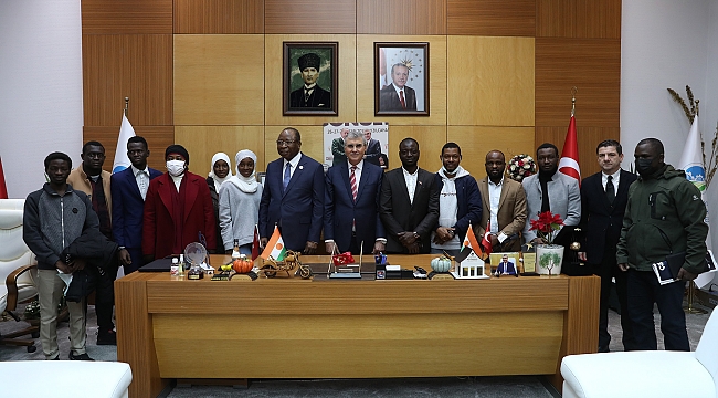 Başkan Yüce Nijer başbakanını ağırladı“Anladık ki dünyada bir cennet varsa orası Sakarya’dır”Kardeş ülke Nijer’in Başbakanı Ouhoumoudou Mahamadou, Sakarya’yı ziyaret etti. Büyükşehir Belediye Başkanı Ekrem Yüce’nin makamına ağırlayıp kentin yeşilini, doğasını ve kültürünü anlattığı Mahamadou, “Anladık ki dünyada bir cennet varsa orası da Sakarya’dır. Doğallığı ve güzelliği korunmuş, bu şehirde her şey var” dedi. Başkan Yüce, “Sakarya her alanda isminden bahsettiren, doğası, güzellikleri, tarımı, ekonomisi muhteşem bir şehirdir. Burası bizim evimiz, biz dünyayı misafir ederiz” dedi.Sakarya Büyükşehir Belediye Başkanı Ekrem Yüce, Nijer Başbakanı Ouhoumoudou Mahamadou ve beraberinde gelen heyeti Büyükşehir Belediyesi makamında ağırladı. Sakarya ile Nijer arasındaki dostluk ilişkisini tazeleyerek kuvvetlendiren görüşmede Başbakan Mahamadou’ya Nijer Sanayi Bakanı Salamatou Gourouza, Nijer Ankara Büyükelçisi Salou Adama Gazibo, Nijer Tarım Bakanı Abba Issa Alambedji ve Nijer Eğitim Bakanı Ousmane Rabiou eşlik etti. Nijer heyetini Büyükşehir Belediye Başkanı Ekrem Yüce karşıladı. Sakarya Büyükşehir Belediyesi Mehteran Takımı, Nijer heyetini marşlarla karşıladı.Başkan Yüce Sakarya’yı anlattıZiyarette ayrıca Sakarya Valisi Çetin Oktay Kaldırım, SATSO Başkanı Akgün Altuğ, Büyükşehir Belediyesi Genel Sekreteri Mustafa Ak, Genel Sekreter Yardımcıları Doç. Dr. Furkan Beşel, Bedrullah Erçin ve Ziya Cevherli yer aldı. Başbakan Mahamadou, başkanlık makamındaki hatıra defterini imzaladı. Ziyaret, Sakarya’yı tüm yönleriyle anlatan tanıtım videosunun gösterimiyle başladı. Gösterimin sonunda Başkan Yüce, Başbakan Mahamadou ve heyetine Sakarya’nın üretim potansiyelinden, doğal güzelliklerinden ve coğrafi konumundan bahsederek şehrin dinamiklerini anlattı.“Aynı inancı paylaşanlar kardeştir”Bir insanın hayal edebileceği en güzel şehrin Sakarya olduğunu vurgulayan Başkan Yüce, iki ülke arasındaki kardeşliğe dikkat çekerek, “Bugün gönlümüzde ciddi yeri olan tarihi bağlarla süslenmiş ve iş birliğimizin uzun yıllardır devam ettiği Nijer heyetini karşılamaktan duyduğum memnuniyeti ifade ediyorum. Coğrafya bir kaderdir. Coğrafyamızı doğum yerimizi anne babamızı seçme şansımız yok bu bir kaderdir. Ama nerde olursak olalım aynı inancı paylaşanların kardeş olduğu bir gerçektir. Şimdi bir hayal kuralım. Düşünün ki seçme imkânının olsa neyi seçerdiniz? Bir şehir olsun ki denizi olsun, gölleri olsun, içinden nehir aksın, içinde longozu olsun, dağları yaylaları olsun, ormanları, ovaları olsun ve bütün dünya insanına sevgiyle saygıyla yaklaşan insanları olsun ister. İşte burası Sakarya, burada yok yoktur. Çok değişik kültür ve ülkelerden gelen mozaik bir şehirdir. Adeta dünyanın minyatürüdür. Türkiye’nin de her bölgesinden vatandaşımız Sakarya’da ikamet etmektedir” dedi.