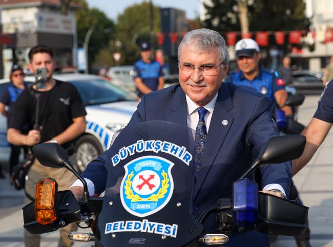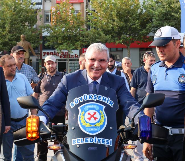 Büyükşehir filosuna 13 yeni araçBüyükşehir Belediyesi, 5 motosiklet, 3 zabıta aracı, mobil tır ve 4 vidanjörle araç filosunu güçlendirdi. Başkan Ekrem Yüce, “Zabıta hizmetleri ve altyapı çalışmalarında kullanılacak yeni araçlarımızın yanı sıra afet durumlarında hizmet sunacak mobil tırı da bünyemize dahil ettik. Önümüzdeki yıllarda araç filomuzu daha da genişletmeyi ve geliştirmeyi planlıyoruz. Hayırlı olsun” dedi.Sakarya Büyükşehir Belediyesi bünyesine dahil ettiği yeni araçlarla filosunu güçlendiriyor. Zabıta hizmetleri, altyapı çalışmaları ve afet durumları için mobil tırdan oluşan araçlar düzenlenen törenle vatandaşlara tanıtıldı. Programda Başkan Yüce’nin yanı sıra AK Parti İl Başkan Yardımcısı Ömer Arslan, ilçe belediye başkanları, ilçe başkanları, SESOB Başkanı Hasan Alişan, STK ve oda temsilcileri, Büyükşehir ve SASKİ bürokratları, basın mensupları ve çok sayıda vatandaş yer aldı. Filoya dahil edilen araçları inceleyen Başkan Yüce, zabıta ekiplerinin kullanacağı motorla deneme sürüşü yaptı.Şehrimizin gelişimi için durmadan çalışıyoruzBaşkan Ekrem Yüce, “Büyükşehir Belediyesi olarak hemşerilerimizin hayatının her alanında var olmaya, hizmet etmeye devam ediyoruz. Şehrimizin gelişimini, kalkınmasını, büyümesini sağlayan projelerin yanında, gelecek dönemlerde gerçekleştireceğimiz çalışmaları da şimdiden planlıyoruz. Şehrimizin can damarı olan yollarımızda; yenileme, asfaltlama, park-bahçe çalışmalarımıza devam ederken bir yandan da ulaşım hizmetlerimize de hız kesmeden devam ediyoruz. Filomuza yeni kazandırdığımız araçlarımızla taşıma sistemimizin sürekli artırıyoruz” dedi.Büyükşehir hizmetleri için 13 yeni araçZabıta hizmetleri ve altyapı çalışmalarında kullanılacak yeni araçların yanı sıra afet durumlarında kullanılacak mobil tırı da bünyelerine dâhil ettiklerini belirten Başkan Yüce, “Bugün zabıta teşkilatımızın araç filosuna 5 motosiklet ve 3 zabıta aracı dâhil ediyoruz. Bunun yanı sıra olası bir afet durumlarında veyahut etkinliklerde kullanılması için araç filomuza mobil tır ekliyoruz. Büyükşehir Belediyesi olarak kanalizasyon ve rögar temizleme araçlarımıza 4 vidanjör ilave ediyoruz. Önümüzdeki yıllarda araç filomuzu daha da genişletmeyi ve geliştirmeyi planlıyoruz. Hayırlı olsun. Rabbim kazasız belasız kullanmayı nasip etsin” diye konuştu.Sakarya her alanda adını dünyaya duyurmaya devam edecekBaşkan Yüce, sözlerini şu şekilde tamamladı: “Sakarya’mız bulunduğu coğrafi konum açısıyla, ulaşımıyla, doğasıyla, turizmiyle, sanayisiyle önemli bir şehirdir. Tarım faaliyetlerinden spor faaliyetlerine kadar her alanda adını dünyaya duyuran ve günden güne gelişimini sürdüren bir şehirdir. ‘İşleyen demir pas tutmaz’ sözünden hareketle şehrimiz için 7/24 çalışıyor, faydalı işler yapmaya devam ediyoruz. Sakarya’mız; harcadığımız emekler, yaptığımız planlar, gerçekleştirdiğimiz çalışmalar sayesinde ışıldadığı gibi gelecek dönemlerde gerçekleştireceğimiz faaliyetler ile daha da ışıldayacak inşallah” dedi.