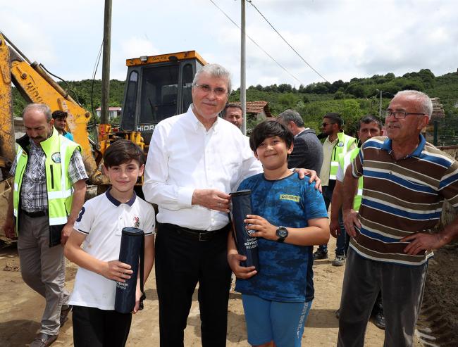 Başkan Yüce sel afetinin yaşandığı Kocaali’deBüyükşehir Belediye Başkanı Ekrem Yüce, Kocaali ilçesinde meydana gelen sel felaketinin ardından bölgede incelemelerde bulunarak vatandaşların taleplerini dinledi. Başkan Yüce, “Tüm personelimizle eksiksiz bir şekilde uyumadan, dinlenmeden çalışarak felaketin izlerinin çoğunu ortadan kaldırdık. Kocaalili hemşerilerimize ve selin etkili olduğu şehirlerdeki vatandaşlarımıza geçmiş olsun diyorum” dedi.Sakarya Büyükşehir Belediye Başkanı Ekrem Yüce, bölgede etkili olan yağışın ardından sel felaketi yaşanan Kocaali ilçesinde incelemelerde bulunarak vatandaşların taleplerini dinledi. Kocaali Belediye Başkanı Ahmet Acar ile AK Parti Kocaali İlçe Başkanı Ersan Demir’in de eşlik ettiği incelemelerde Başkan Yüce, ekiplerin çalışmalarını yerinde inceledi ve bundan sonraki süreçte alınacak önlemler hakkında da bölge halkıyla fikir alışverişinde bulundu. Yaraların hızla sarıldığı bölgede yağışın başladığı ilk andan itibaren 205 araç ve 357 personel aralıksız bir şekilde çalışmalarını sürdürüyor. Özellikle Demiraçma Mahallesi’nde etkili olan felaketin etkilerini en kısa sürede ortadan kaldıracaklarını dile getiren Başkan Yüce, “Bölgede çalışmalarımız canla başla devam ediyor. Vatandaşlarımız müsterih olsunlar en kısa sürede yaraları tek tek saracağız” ifadelerinde bulundu.Çalışmaların yakından takipçisiyimYaşanan felaketten dolayı üzüntü içinde olduğunu söyleyen Başkan Yüce, “Öncelikle bölge halkına geçmiş olsun dileklerimi iletiyorum. Marmara’nın doğusu ve Karadeniz’in batısında etkisini gösteren olağanüstü yağış karşısında şehrimizde de yaşanan olumsuzluklardan ötürü üzüntü içerisindeyim. Ekiplerimiz Kocaali’de, Düzce’de ve Bartın’da sel çalışmalarını aralıksız bir şekilde sürdürüyor. Yağışın başladığı ilk andan itibaren sürecin yakın takipçisiyim. Elimizden gelenin fazlasıyla vatandaşlarımızın yanında olmaya devam ediyoruz. Yaşanan felaketin hızlarını da en kısa zamanda sileceğiz. Ardından devam eden projelerimize yenilerini ekleyerek alacağımız önlemlerle böyle afetlerin bir daha yaşanmaması için mücadele edeceğiz” dedi.Selden etkilenen vatandaşlara geçmiş olsun temennileriBaşkan Yüce, “Bölgede mağduriyet yaşayan vatandaşlarımızla tek tek görüştük. Sakarya Büyükşehir Belediyesi olarak ilçe belediyemizle yürüttüğümüz ortak çalışmalar ile vatandaşlarımızın hayatını en kısa sürede normale döndüreceğiz. Tüm personelimizle eksiksiz bir şekilde uyumadan, dinlenmeden çalışarak felaketin izlerinin çoğunu ortadan kaldırdık. Bugün de görüldüğü gibi Türkiye Cumhuriyeti tüm kurumlarıyla, bakanlarıyla, belediye başkanlarıyla ve tüm mensuplarıyla her zaman vatandaşının yanında yer almaktadır. Rabbim afetlerin tekrarını yaşatmasın. Tekrardan Kocaalili hemşerilerimize ve selin etkili olduğu şehirlerdeki vatandaşlarımıza geçmiş olsun diyorum” diye konuştu.