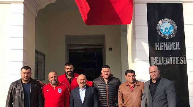 Başpehlivanlar Ahmet Kavakçı, Mahmut Kavakçı, Süleyman Aykırı, İsmet Özmetin, Şükrü Kazan ve Ünal Karaman Hendek Belediye Başkanı İrfan Püsküllüyü makamında ziyaret etti.