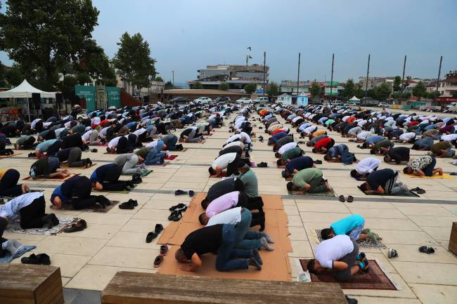 Büyükşehir Belediyesi bayram geleneğini sürdürüyor. Ramazan Bayramı namazının 15 Temmuz Demokrasi Meydanı’nda kılınması için hazırlıklar başladı. Başkan Ekrem Yüce, namazı birlikte eda edecek olan yüzlerce vatandaşla burada bayramlaşacak.Sakarya Büyükşehir Belediyesi, her yıl olduğu gibi bu yıl da bayram geleneğini sürdürecek. Vatandaşların bayramı yan yana, en uygun ortamda geçirebilmesi için tüm birimleriyle görev başında olacak olan Büyükşehir, bayram namazı için hazırlıklara başladı.Bayramlaşma yapılacakSon yıllarda olduğu gibi meydanda namaz geleneği devam edecek. Meydan, Büyükşehir Belediyesi, Sakarya Valiliği ve İl Müftülüğü’nün çalışmasıyla namaz için hazırlanacak. Vatandaşlar bayramın sabahında meydanda buluşacak. Başkan Ekrem Yüce’nin de katılımıyla 6.29’da kılınacak olan bayram namazı sonrası bayramlaşma yapılacak.Tüm vatandaşlarımızı bekliyoruzBüyükşehir Belediyesi’nden yapılan açıklamada, “Rahmetiyle, bereketiyle, huzuruyla bir Ramazan’ın daha sonuna geldik. Sofralarımızı paylaştık, ekmeğimizi bölüştük. Birdik, beraberdik ve doyumsuz bir Ramazan’ı eda ettik. Büyük bir mutlulukla ulaştığımız bayramın sabahında namazı birlikte eda etmek için tüm hemşerilerimizi Demokrasi Meydanı’na bekliyoruz” denildi.