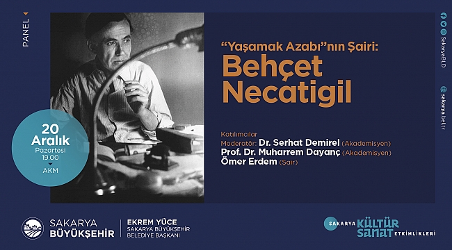 Behçet Necatigil Paneli AKM’deBüyükşehir Belediyesi Aralık Kültür Sanat Etkinlikleri 20 Aralık Pazartesi günü ‘Yaşamak Azabının Şairi: Behçet Necatigil’ adlı panel ile devam edecek. AKM’de saat 19.00’da gerçekleştirilecek olan panelde Necatigil’in edebi hayatı ve yaşamı konuşulacak.Sakarya Büyükşehir Belediyesi Aralık Kültür Sanat Etkinlikleri ‘Yaşamak Azabının Şairi: Behçet Necatigil’ adlı panel ile devam edecek. 20 Aralık Pazartesi günü AKM’de gerçekleştirilecek olan panel saat 19.00’da başlayacak. Moderatörlüğünü Dr. Serhat Demirel’in üstleneceği programa Prof. Dr. Muharrem Dayanç ile Şair Ömer Erdem konuşmacı olarak katılacak. Kültür ve Sosyal İşler Dairesi Başkanlığı’ndan yapılan açıklamada, Behçet Necatigil’in konuşulacağı programa tüm kültür sanat dostları davet edildi.