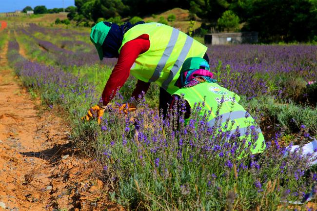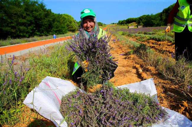Büyükşehir Belediyesi dev tarım üssü Sakarya Botanik Vadisi’nde morun her tonuyla vadide görsel şölen oluşturan lavantaların hasadına devam ediyor. 3 milyondan fazla ve 21 farklı tıbbi-aromatik bitkiye can suyu olan vadi, hasat başladığı günden bu yana adeta bir fotoğraf platosuna dönüştü. Türkiye’nin dört bir yanından ve Sakarya’dan bahçeye gelenler büyüleyici manzaranın tadını çıkarıyor.Sakarya Büyükşehir Belediyesi’nin dev tarım projesi Botanik Vadisi’nde en renkli hasat başladı. Geçtiğimiz ay adaçayı hasadı yapılan vadide bugünlerde ise mor rengiyle görsel bir şölen oluşturan lavanta hasadına devam ediliyor.Platoya dönüştüBu hasatla birlikte vadi adeta dev bir fotoğraf platosuna dönüştü. Türkiye’nin dört bir yanından ve Sakarya’dan misafirler, bu hasadın güzelliğine şahitlik etmek için vadiye geliyor. Morun her tonunu barındıran bahçede çekilen yüzlerce fotoğraf, unutulmaz bir hatıra olarak kayıtlara ekleniyor.3 milyon şifalı bitki69 kilometrelik Sakarya Botanik Vadisi’nde biberiye, mentol nanesi, kekik, aronya, defne, akasya, ıhlamur ve kuşburnu gibi 21 farklı tıbbi ve aromatik toplam 3 Milyon 171 bin 876 adet bitki yer alıyor. Milyonlarca bitkinin hasat edildiği devasa bahçede lavanta hasadından sonra biberiye ve kediotu için işlem başlayacak.Laboratuvarlarda işlenecekBüyükşehir Belediyesi iştiraki Fidan AŞ’nin güçlü ve profesyonel kadrosu tarafından işlenerek sabuna, uçucu yağlara, parfüme, esansa ve şifalı ürünler dönüştürülen tıbbi bitkiler Sakarya’nın dört bir yanında Şifaevi ve BELPAŞ mağazalarında satışa sunuluyor. Büyükşehir Belediyesi FİDAN A.Ş ve SERA A.Ş görevli kadrosu ayrıca bu ürünleri farklı internet mağazalarından ve uygulamalardan vatandaşların kapısına kadar ulaştırılıyor.