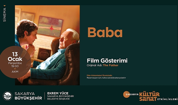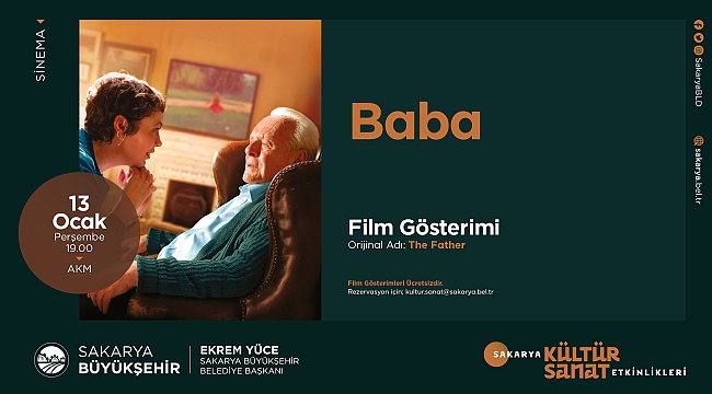 Sakarya Büyükşehir Belediyesi tarafından düzenlenen kültür sanat programları tüm hızıyla devam ediyor. 13 Ocak Perşembe günü AKM’de gerçekleştirilecek ‘Baba’ isimli film sanatseverlerin gösterimine sunulacak. Saat 19.00 da başlayacak film gösterimi için katılımın biletsiz olduğu bilgisi vatandaşlarla paylaşıldı. Kurum tarafından yapılan açıklama, “Vatandaşlarımızın sosyal, kültürel ve sanatsal hayatına katkı sağlayacak programları gerçekleştirmeye devam ediyoruz. Düzenlediğimiz programlarla çocuklardan yaşlılara her yaş aralığına hitap ediyoruz. Bugün gerçekleştireceğimiz programda da vatandaşlarımızın katılımını bekliyoruz” ifadeleri kullanıldı.