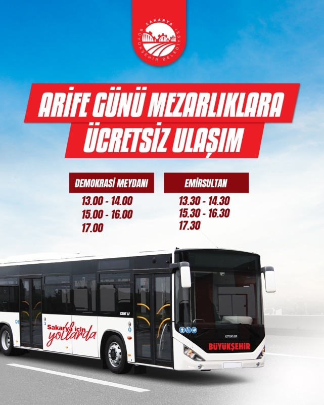 Sakarya Büyükşehir Belediyesi Ramazan Bayramı arifesinde mezarlıklara ziyaret edecek vatandaşlar için ulaşım imkanı sağlayacak.