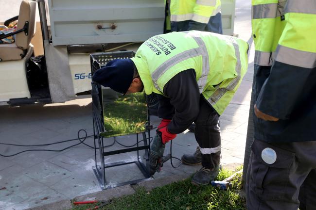 Sakarya Büyükşehir Belediyesi şehir merkezinde kullanım ömrünü doldurmuş kent mobilyalarını ve çöp kutularını yeni tasarımlarla değiştirerek kent estetiğine göze hoş gelen bir dokunuş yaptı.Büyükşehir Belediyesi, şehrin kalbinde önemli dokunuşlar yapıyor. Özellikle merkezde her gün binlerce vatandaşı ağırlayan park ve bahçelerde yeni ve estetik bir değişikliğe gidildi.Yeni çöp kutularıMerkez alanlardaki kent mobilyaları (banklar) ve çöp kutuları farklı tasarıma sahip yeni ürünlerle değiştirildi. Kullanım ömrünü tamamlamış, zamanla deforme olan bank ve çöp kutuları modern bir görünüme kavuştu.22’si çocuk olan 470 bankVatandaşların dinlenme alanlarına 470 yeni bank montajı tamamlandı, bölgedeki eskiyen çöp kutuları ise farklı tasarımlarla yenilendi. Minikleri unutmayan Büyükşehir, 22 yeni çocuk bankını kentin merkezinde Sakaryalıların hizmetine sundu.Ayrıca Büyükşehir’in sosyal tesislerinde keyifli vakit geçiren miniklere yeni dinlenme alanı oluşturuldu. Yapılan bu çalışmalar, kent estetiğine katkı sunarak şehrin görsel zenginliğini artırdı.