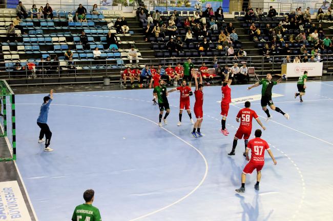 Erkekler Hentbol Süper Ligi 10. Hafta karşılaşmasında Bahçelievler Belediyesi’ni konuk eden Büyükşehir Hentbol sahadan sahadan 46-29’luk skorla ayrılarak 8. Galibiyetini aldı.Sakarya Büyükşehir Hentbol takımı Erkekler Hentbol Süper Ligi 10. Hafta karşılaşmasında Bahçelievler Belediyesi’ni konuk etti. Serdivan Spor Salonu’nda oynanan mücadeleye Çetin Çelik, Dragan Pavlovic, Adnan Tayfur, Atakan Şirin, Oğulcan Güney ve Onur Ersin 7’lisi ile başladı. Mücadelenin ilk yarısında hızlı hücumlarda bulduğu fırsatları değerlendiren Büyükşehir Hentbol ve devre arasına 22-13 önde girdi. İkinci yarıya da hızlı hücum ataklarıyla başlayan Büyükşehir Hentbol, rakibini 46-29’luk farklı bir skorla geçerek ligdeki 8. galibiyetini elde etti. Büyükşehir’in tecrübeli oyuncusu Ramazan Döne attığı 8 golle maçın yıldız ismi oldu. Onur Ersin ve Samet Kanberoğlu ise 5’er golle galibiyette büyük pay sahibi oldu. Büyükşehir Hentbol, zirve takibini sürdürüyor.