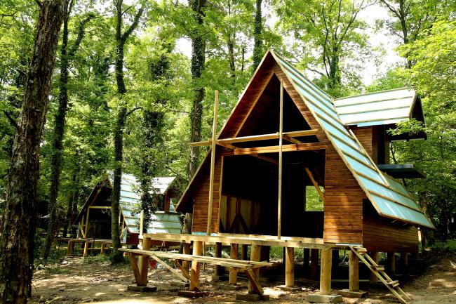 4 tanesi tamamBüyükşehir Belediyesi, Sakarya’nın merkezi haline geldiği bungalov otelciliğinde vatandaşlara uygun fiyata tatil imkânı sunacağı 10 adet bungalovun 4’ünü tamamladı, doğayla bütünleşerek bölgeye renk katan projede diğer 6 bungalovun, çevre ve peyzaj işlemlerinin bitirilmesi için çalışmalar hızlandı.Sakarya Büyükşehir Belediyesi, sosyal hayata önemli dokunuşlar yapmaya devam ediyor. Uçak, Ters Ev, Millet Kıraathaneleri, Vagon Park hizmetleri ve şehirdeki tüm sosyal donatı alanlarına dokunuşuyla vatandaşların sosyal yaşamına katkı sunan Büyükşehir, turizm alanında da önemli adımlar atıyor.4’ü tamamHizmet verdiği tesislerde vatandaşlara ayrıcalıklı imkanlar sunan Büyükşehir, baştan sona elden geçirdiği Sakarya İl Ormanı Tabiat Parkı’nda orman evlerinden sonra bungalov yapımına başladı. Orman konseptli otel evlerinin hemen yanında başlayan otelde çalışmalar, hizmetin sezona yetiştirilmesi için hızlandı. 10 adet bungalovdan 4’ünün yapımı tamamlandı.İşlemler hızlandıÇevre düzenlemesi, yürüyüş yolları ve ahşap merdivenlerin yapımı ve 6 adet bungalovda işlem devam ediyor. Çalışmalar tamamlandığında Büyükşehir, özellikle son dönemde çok tercih edilen bungalov otelciliği konusunda vatandaşlara piyasadan daha makul şartlarda hizmet verecek.Türkiye’nin yıldızıBireysel turizmin vazgeçilmesi haline gelen ve son yıllarda Sapanca’nın ‘merkez konumunda’ olduğu bungalov tatili, Sakarya’da ve Türkiye’nin dört bir yanından gelen misafirler için daha ulaşılabilir ve kolay hale gelecek. Başkan Ekrem Yüce’nin talimatıyla hızlandırılan çalışmaların en kısa sürede tamamlanması hedefleniyor.Yoğun talep görecekİşlemler bittiğinde otel bölgesi yemyeşil peyzaj alanları, yürüyüş yolları, ahşap merdivenler ve tabiatın en özel ürünleriyle süslenecek. Yeşilin her tonuna ev sahipliği yapan İl Ormanı Tabiat Parkı’ndaki bu hizmet Türkiye’ye örnek olacak. Son teknolojik ürünleri, modern tasarımı ve 42 metrekare olan her bir bungalovda oluşturulacak konforlu alanlarıyla hizmetin yoğun bir talep göreceği tahmin ediliyor.