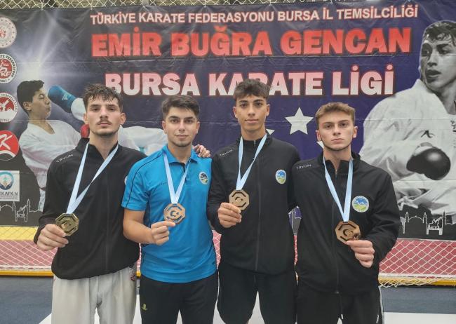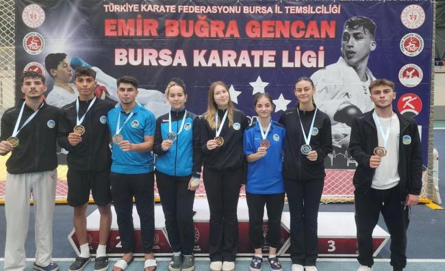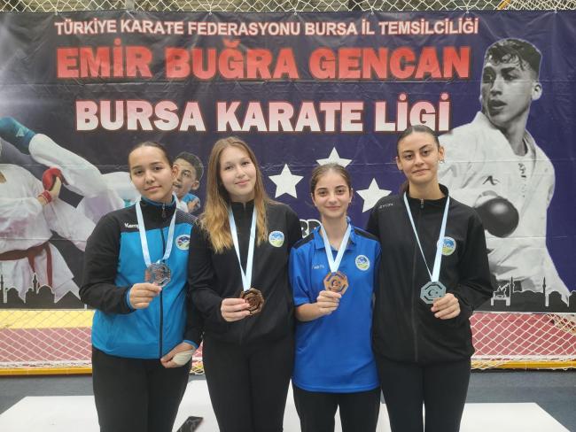 Büyükşehir Belediyesi karate takımı, Bursa’da gerçekleştirilen iller arası Emir Buğra Gencan Karate Ligi’nde toplamda 3 gümüş ve 5 bronz madalya kazanarak turnuvaya damga vurdu.Sakarya Büyükşehir Belediyesi karate sporcuları, iller arası Emir Buğra Gencan Karate Ligi’nde önemli bir başarıya imza attı.Kürsünün sahibi BüyükşehirBursa’da 21 il ve 47 kulüpten toplam 300 sporcunun katılımıyla gerçekleştirilen Karate Ligi mücadelelerinde yer alan ve nefes kesen bir performans ortaya koyan Büyükşehirli sporcular kürsünün sahibi oldu.Toplamda 24 sporcuyla organizasyona katılan Büyükşehir karate takımı, 3 gümüş ve 5 bronz madalya toplayarak Sakarya’ya tarihi bir gurur yaşattı.İşte Büyükşehir’in gurur tablosu;Beyzanur Kızılca – Genç Kadınlar +66 kiloda gümüş madalyaEmirhan Uygun – Büyük Erkekler 67 kiloda gümüş madalyaBurcu Naz Demirci – Ümit Kadınlar 54 kiloda gümüş madalyaMeryem İrkin – Büyük Kadınlar 61 kiloda bronz madalyaMuhammed Ali Baş – Ümit Erkekler 52 kiloda bronz madalyaŞeref Eren Özdemir – Genç Erkekler 76 kiloda bronz madalyaHasan Demirel – Büyük Erkekler 75 kiloda bronz madalyaMiraç Keleş – Genç Kadınlar 48 kiloda bronz madalya