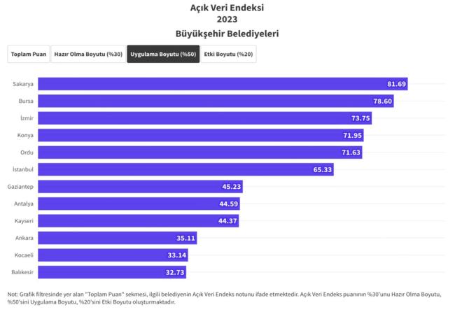 Büyükşehir Belediyesi tarafından 4 ay gibi kısa bir süre önce hayata geçirilen Açık Veri Portalı, Yerel Yönetimler Açık Veri Endeksi değerlendirmesinde uygulama kategorisinde en yüksek puanı alarak birinci oldu.Sakarya'nın halkı ile belediye arasındaki iletişimi güçlendirmek, veriye dayalı karar alma süreçlerini desteklemek ve şehirdeki yaşam kalitesini artırmak amacıyla Büyükşehir Belediyesi tarafından hayata geçirilen Açık Veri Portalı, Açık Veri ve Teknoloji Derneği'nin her sene yaptığı Yerel Yönetimler Açık Veri Endeksi değerlendirmesinde uygulama kategorisinde en yüksek puanı alarak birinci oldu.Bursa’yı, İzmir’i geçti3 ayrı kategoride birçok büyükşehir ve ilçe belediyelerinin de yer aldığı değerlendirmelerde Büyükşehir Belediyesi’nin 4 ay önce hayata geçirdiği Açık Veri Portalı, yazılım konusunun değerlendirildiği uygulama kategorisinde Bursa, İzmir, Konya gibi şehirleri geçerek 81,69 puanla birinci sırayı aldı. Kısa bir süre önce hayata geçirilen ve 6 organizasyondan 98 veri setinin yer aldığı Açık Veri Portalı, şeffaflık ve katılımcılığı ön planda tutan bir portal olarak adından söz ettirdi.12 farklı kategori varŞehirdeki birçok farklı veriyi halka erişilebilir hale getiren Açık Veri Portalı’nda coğrafi veriler, yaşam, sağlık, belediye hizmetleri, afet ve acil durum, çevre, kültür sanat, spor ve ulaşım gibi 12 farklı bilgi kategorisi yer alıyor. Sadece şehir sakinlerine değil, aynı zamanda geliştiricilere, araştırmacılara ve diğer paydaşlara da kapılarını açan Açık Veri Portalı, Sakarya'nın verilerini kullanarak yeni uygulamalar geliştirmek, araştırmalar yapmak, şehrin gelecekteki projelerini daha da iyileştirmek, şehir sakinlerinin katılımını teşvik etmek ve şehirdeki yaşam kalitesini artırmak gibi birçok fırsat sunuyor.Açık Veri nedir?Açık veri, kamuya ait bilgilerin, internet üzerinden herkesin erişimine açık, kullanılabilir ve yeniden kullanılabilir biçimde sunulması anlamına gelir. Bu veriler, kamu kurumları veya diğer kuruluşlar tarafından toplanır ve paylaşılır. Açık veri, şeffaflığı teşvik etmek, demokratik katılımı artırmak, inovasyonu desteklemek ve toplumun genel yararına hizmet etmek amacıyla kullanılır. Bu veriler, genellikle çeşitli uygulamaların, araştırmaların ve geliştirmelerin temelini oluşturur ve toplumun bilinçli kararlar almasına yardımcı olur. Portal Erişim Linki: https://acikveri.sakarya.bel.tr