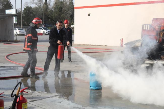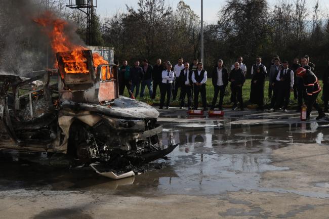 Büyükşehir Belediyesi bünyesinde görev yapan otobüs şoförleri, yangın söndürme ve yangından korunma yolları konusunda iki hafta boyunca teorik ve uygulamalı eğitim aldı.Sakarya Büyükşehir Belediyesi ulaşımda hizmet kalitesini artırmak 7 gün 24 saat çalışıyor. Toplu taşımada her gün taşınan binlerce yolcu göz önünde bulundurularak, oluşabilecek maddi manevi her türlü zararın önüne geçilmesi için yeni bir eğitim programı başlatıldı. Büyükşehir, otobüs şoförlerine olası yangın vakalarına müdahale için 2 hafta boyunca eğitim verdi.İtfaiye Dairesi Başkanlığı’na bağlı ekipler tarafından gerçekleştirilen eğitimlerde, şoförlere yangınlara karşı alınması gereken tedbirler anlatıldı. Yangın anında neler yapılması gerektiği, ilk müdahalenin nasıl yapılacağı ve acil durum haberleşmesi konularında teorik ve pratik eğitimler verildi.Öncelik vatandaşın güvenliğiUlaşım Dairesi Başkanlığı tarafından yapılan açıklamada, “Periyodik olarak belli zaman aralıkları ile gerçekleştirilen eğitim programları ile Büyükşehir Belediyesi bünyesinde görev yapan toplu taşıma şoförlerinin bilinç ve kabiliyetlerinin artırılarak olası acil durumlar karşısında etkin şekilde müdahalede bulunması amaçlanmaktadır. Bu sayede olası araç yangınlarına doğru ve hızlı bir şekilde müdahale edilmesi hedefleniyor. Önceliğimiz her zaman vatandaşımızın güvenliği ve huzurudur” denildi.