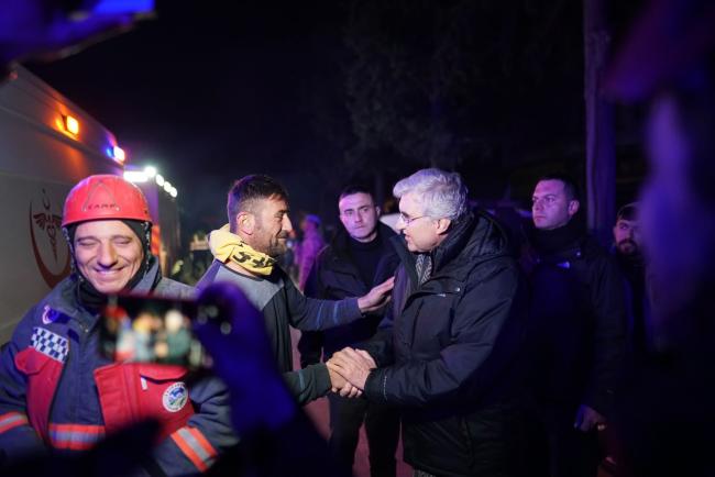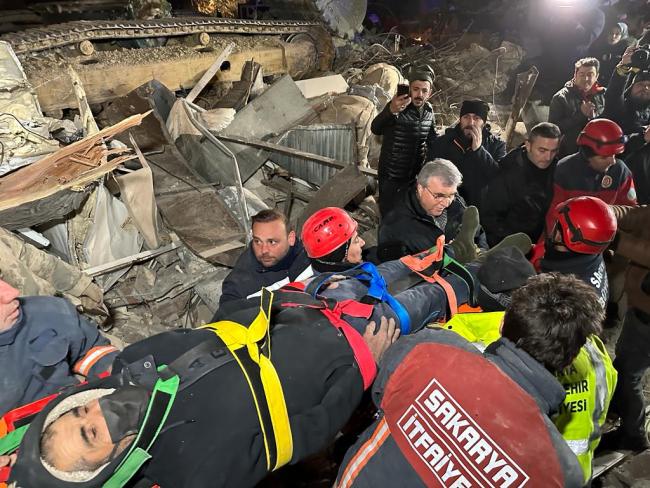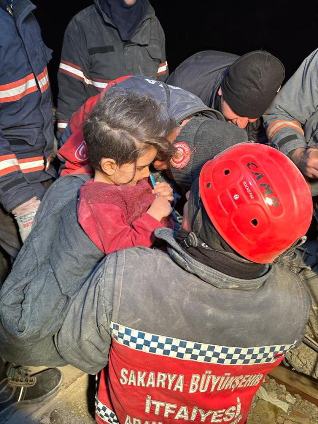 Büyükşehir Belediyesi İtfaiyesi, Başkan Yüce'nin bizzat katıldığı Kahramanmaraş'taki kurtarma çalışması sırasında 72'nci saatin sonunda 3'üncü kattan girdikleri enkazdan 5 yaşındaki Mir Berzan ve ailesini kurtarak 'mucizeye' tanıklık etti.Sakarya Büyükşehir Belediyesi, Türkiye'yi yasa boğan Kahramanmaraş merkezli iki büyük depremin hemen akabinde tüm imkânlarıyla seferberlik başlatarak ilk saatlerde bölgeye ulaştı.139 personel ve 55 araçBüyükşehir İtfaiyesi ve Büyükşehir Arama Kurtarma Ekibi'nin bulunduğu 139 personeli ve 55 aracı bölgeye ulaştırarak kurtarma ve enkaz kaldırma faaliyetlerine dâhil oldu. Başkan Ekrem Yüce de ekiplerin hemen arkasından depremin merkez üssü Kahramanmaraş'a indi. Yüce, ekiplerin yaptığı kurtarma çalışmasını bizzat enkazda komuta etti.Kahramanmaraş'ın merkezinde yıkılan bir binadan ses alan ekipler, bu noktada dinlemeye odaklandı. 5 yaşındaki Mir Berzan ve ailesinin hayatta olduğunu fark eden Büyükşehir İtfaiyesi ve bölgede çalışan tüm kahraman kurumların ekipleri, yaşam tüneli açarak binaya girdi.Topyekûn fedakârlık3'üncü kattan açılan tünelden binanın 4'üncü katının bulunduğu noktaya inilerek 5 yaşındaki kıza, annesine ve babasına ulaşıldı. 15 saat süren kurtarma çalışmasının neticesinde küçük kız ve ailesi açılan boşluktan canlı çıkarıldı. Hastaneye sevk ediliş sürecine kadar her anda bizzat görev alan Yüce, bölgede tüm kurumların büyük bir fedakârlık ortaya koyduğunu söyledi.“Tüm gücümüzle devam edeceğiz”Mir Berzan gibi, tüm ailelere ulaşmak için son ana kadar mücadele vereceklerini belirten Yüce, "Sakarya'dan ve Türkiye'nin dört bir yanından yerel yönetimlerle burada omuz omuza verdik. Gerçekten çok büyük bir felaketle karşı karşıyayız. Dayanışmaya, birlikte çabalamaya belki de en fazla ihtiyacımız olan gündeyiz. Her geçen saniye bir can için geri sayım, her enkaz bir umut. Tüm ekiplerimizle buradayız, seferber olduk. Tüm canların sağ salim çıkarılması için bu arkadaşlarım uyumuyor, yemiyor, içmiyor. Hayat kurtarmak için tüm gücümüzle gayret etmeye devam edeceğiz" diye konuştu.Sakarya Büyükşehir Belediyesi'nin ekipleri Hatay, Gaziantep, Kahramanmaraş ve Adıyaman gibi depremin en fazla yıkım oluşturduğu şehirlerde arama kurtarmaya destek veriyor.