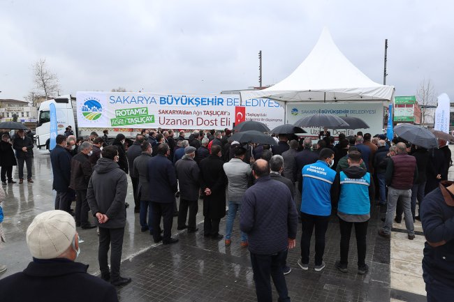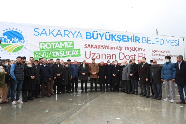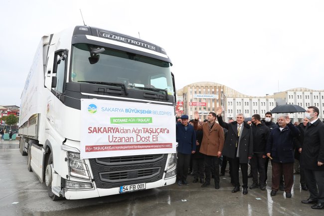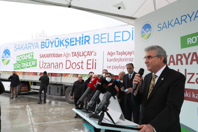 Büyükşehir ‘Kardeşlik Sınır Tanımaz’ Dedi: Ağrı’ya Yardım Tırı GönderdiBüyükşehir Belediyesi ‘Kardeşlik Sınır Tanımaz’ sloganıyla Ağrı’nın Taşlıçay Belediyesine içerisinde 700 koli destek malzemesi bulunan yardım tırı gönderdi.Sakarya Büyükşehir Belediyesi ‘Kardeşlik Sınır Tanımaz’ sloganıyla ihtiyaç duyulan bölgelere yardım tırı yollamaya devam ediyor. Bu kapsamda Büyükşehir Belediyesi, Hayrat Vakfı ve Ağrılılar Derneği işbirliğinde içerisinde 700 adet destek malzemesi bulunan yardım kolisini Ağrı’nın Taşlıçay Belediyesine gönderdi. Demokrasi Meydan’ında düzenlenen uğurlama törenine Başkan Ekrem Yüce’nin yanı sıra İl Müftüsü Hasan Basiş, AK Parti Adapazarı İlçe Başkanı Erol Aydın, Eski Sakarya Milletvekili Hasan Ali Çelik, Hayrat Vakfı ve Ağrılılar Derneği temsilcileri, Büyükşehir ve SASKİ bürokratları ve yardımsever katıldı.Pek çok kardeş şehrimiz varBaşkan Ekrem Yüce, “Bugün burada atalarımızdan bizlere miras kalan dayanışma kültürünün güzel bir örneğini sergilemek için bir araya gelmiş bulunuyoruz. Bildiğiniz gibi tüm dünyada belediyeler arasında kardeş şehir uygulamaları mevcuttur. Kardeş şehirler birbirlerine uzak olan şehirlerin, ilçelerin, kültürel ve ticari amaçla oluşturdukları birliklerdir. Sakarya Büyükşehir Belediyesi olarak biz de pek çok şehir ve ilçeyle “Kardeş Şehir” protokollerini hayata geçirdik. Büyükşehir Belediyemizin;Almanya, Özbekistan, Kırgızistan, Hollanda, Libya, Tunus gibi pek çok ülkede kardeş şehirleri olduğu gibi, Kütahya, Bitlis, Rize, Karabük ilçelerinde de kardeş şehirleri vardır” dedi.700 adet destek kolisiYüce, “Bugünde kardeş şehirlerimizden biri olan Ağrı Taşlıcay Belediyesine dayanışma amaçla göndereceğimiz tır için bir aradayız. Dayanışma Tırımızda 700 koli destek malzemesi bulunmaktadır. Bu kolilerden; 100 tanesi Ağrılılar Derneği, 100 tanesi ise Hayrat Vakfı tarafından Belediyemize hibe edilmiştir. Biz de Büyükşehir Belediyesi olarak 400 koli gıda, 100 koli bebek bakım seti olmak üzere dayanışma tırımıza destek verdik. Ağrılılar Derneği ve Hayrat Vakfı’na hassasiyetlerinden dolayı teşekkür ediyorum. Yardım tırımızın kazasız belasız, sağ salim Ağrı’ya ulaşmasını temenni eder, tüm yardımseverlere teşekkür ederim” dedi.