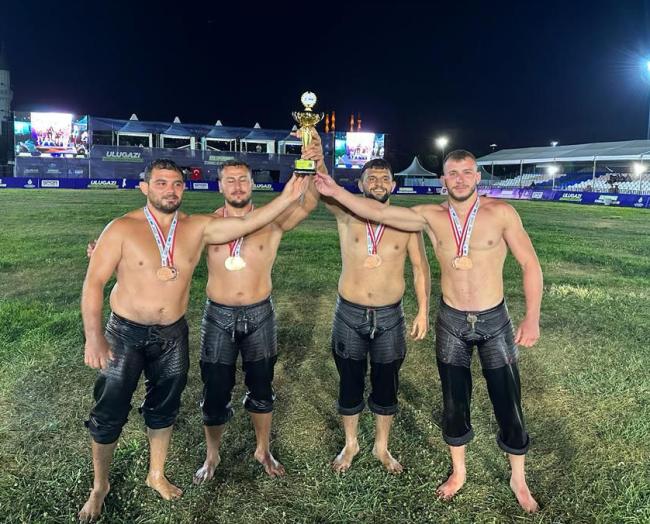 Büyükşehir Belediyesi Spor Kulübü Güreş sporcuları İstanbul’da katıldıkları Ulugazi Yağlı Güreş Festivali ve Denizli’de düzenlenen Beyağaç Yağlı Güreşleri’nde boy gösterdi. 6 sporcunun dereceye girdiği müsabakalar, heyecan dolu anlara sahne oldu.Sakarya Büyükşehir Belediyesi’nin pehlivanları madalyaları toplamaya devam ediyor. Geçtiğimiz hafta sonu iki farklı organizasyonda boy gösteren sporcular, çeşitli kategorilerde şampiyonluk ve dereceler elde etti. İstanbul’da düzenlenen Ulugazi Yağlı Güreş Festivali’ne katılan sporculardan Alparslan Tekmen büyükorta boyda birinci, aynı kategoride Yusuf Erdoğan ise üçüncü oldu. Bir diğer kategori olan küçükorta büyük boyda M. Enes Kösemusul üçüncü ve küçükorta küçük boyda Temel Altıntaş üçüncü oldu.Birbirinden heyecanlı anlara sahne olan müsabakaların bir diğeri ise Denizli’de düzenlendi. 17 Eylül Pazar günü düzenlenen Beyağaç Yağlı Güreşleri’nde Tozkoparan boyunda Fahrettin Adil Çelik birinci, aynı kategoride Ferhat Duman ise üçüncü olmayı başardı.