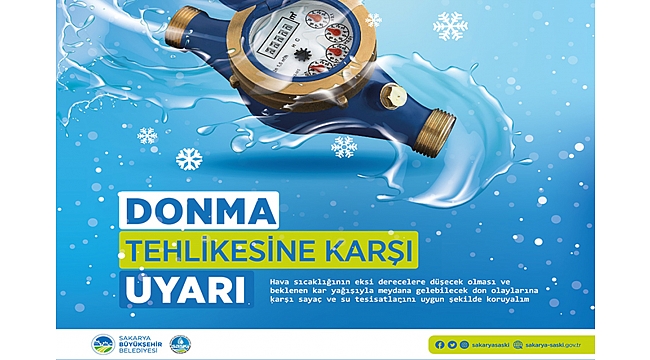 Büyükşehir su sayaçlarıyla ilgili uyarıda bulunduBüyükşehir Belediyesi, önümüzdeki günlerde sıcaklık değerlerinin eksi derecelere düşmesi nedeniyle don uyarısında bulunularak sayaç ve su tesisatlarının koruma altına alınması gerektiği belirtti.Sakarya Büyükşehir Belediyesi Su ve Kanalizasyon İdaresi (SASKİ), önümüzdeki günlerde sıcaklık değerlerinin eksi derecelere düşecek olmasından dolayı ve yüksek kesimlerde başlayan kar yağışı nedeniyle oluşabilecek olumsuzlukların önüne geçmek için don uyarısında bulundu.