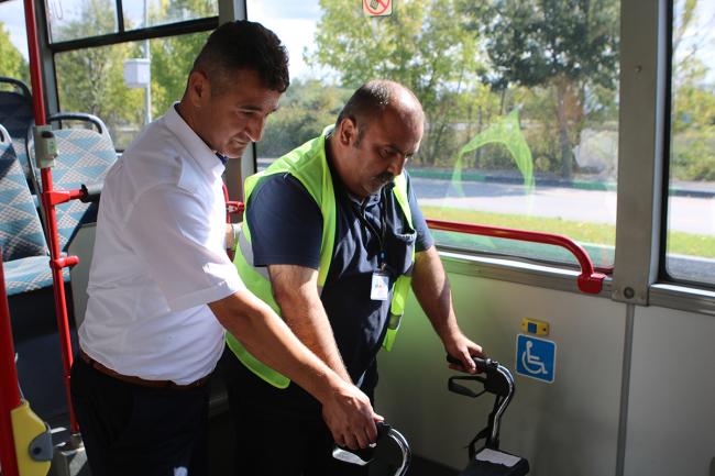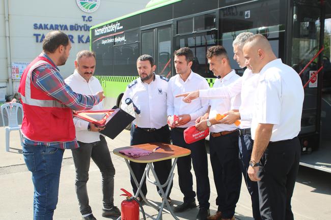Büyükşehir Belediyesi tarafından şoförlere yönelik sürdürülen mesleki yeterlilik eğitimleri, otobüs başında gerçekleştirilen güvenlik eğitimleriyle devam etti. Şoförlere, yolcu ve araç güvenliği konusunda eğitimler verildi.Sakarya Büyükşehir Belediyesi tarafından otobüs şoförlerine yönelik düzenlenen mesleki yeterlilik eğitimleri devam ediyor. Geçtiğimiz hafta iş sağlığı ve güvenliği, kalite yönetim sistemi ile çevre ve trafik kuralları konusunda gerçekleştirilen teorik eğitimlerin ardından, şoförlere yolcu ve araç güvenliği konusunda pratik eğitimler verildi. Büyükşehir Belediyesi otobüs garajında uzman eğitmenler eşliğinde gerçekleştirilen eğitimlerde, şoförlere araç ve yolcu güvenliği konusunda detaylı bilgilendirmeler yapıldı. Eğitimler sonunda girdikleri sınavları başarıyla tamamlayan tüm şoförler, ‘Şehir İçi Toplu Taşıma Otobüs Şoförü Mesleki Yeterlilik Belgesi’ almaya hak kazandı.Vatandaşlarımızın güvenliği önceliğimizdirSakarya Büyükşehir Belediyesi Ulaşım Dairesi Başkanlığı eğitimlerle ilgili bir açıklamada bulunarak, “Belediyemizin otobüs şoförlerine yönelik düzenlenen eğitimler tüm hızıyla devam etmektedir. Teorik ve pratik olarak iki ayrı kategoride gerçekleştirdiğimiz eğitimlerde teorik eğitimleri geride bırakarak pratik eğitimlere geçmiş bulunuyoruz. Bu eğitimlerde, garajda araç başı kontrolleri, sefer hazırlığı, araç güvenliği başta olmak üzere araç içi ve dışı kontroller konusunda bir çok eğitim verildi. Bunların yanı sıra şoförlerimize özellikle engelli vatandaşlarımıza davranış ve yolcularımızın güvenliği konusunda oluşabilecek tüm risklere karşı eğitimler verildi. Büyükşehir Belediyesi olarak her zaman olduğu gibi bundan sonraki süreçte de, vatandaşlarımızın seyahat konforuna ve güvenliğine yönelik çalışmalarımız devam edecektir” ifadeleri kullanıldı.