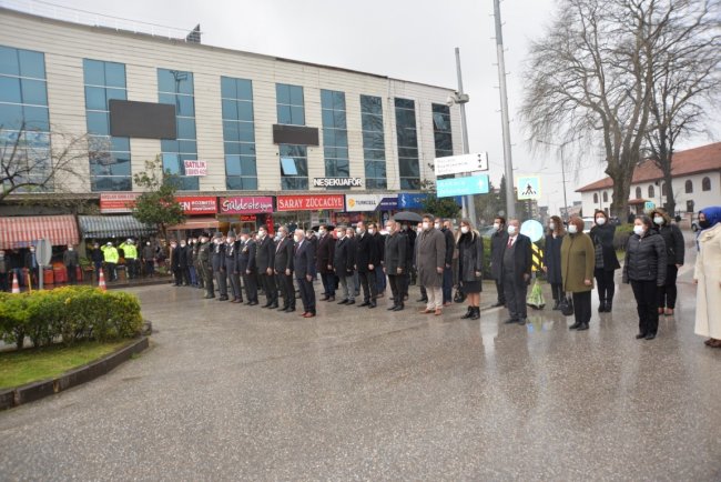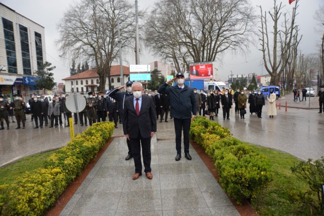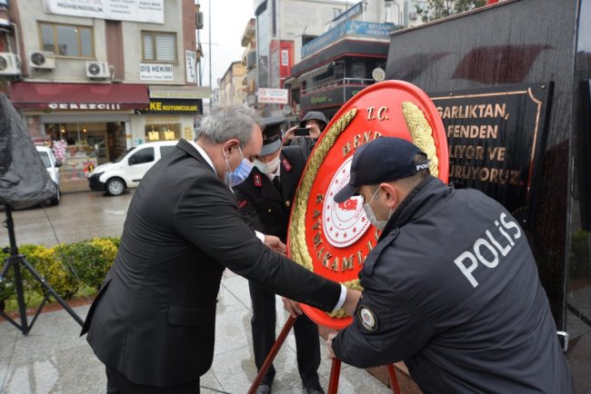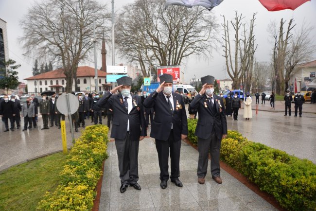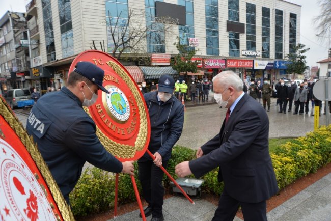 ÇANAKKALE ZAFERİNİN 106.YILI18 Mart Şehitleri Anma Günü ve Çanakkale Deniz Zaferi töreni, çelenk sunumunun ardından Şehit kabirlerinin ziyareti ile koronavirüs tedbirleri kapsamında gerçekleştirildi. Ulu Önder Gazi Mustafa Kemal Atatürk ve şehitlerimiz düzenlenen törenle anıldı.Kovid-19 tedbirleri kapsamında gerçekleşen 18 Mart Şehitleri Anma Günü ve Çanakkale Deniz Zaferi’nin 106.yılı Cumhuriyet meydanında Atatürk anıtına çelenk sunma töreni ile başladı. Törene Hendek Kaymakamı Halil İbrahim Acır, Hendek Belediyesi Başkan Yardımcısı Hüdaverdi Bahadır, Hendek Cumhuriyet Başsavcısı Sebahattin Erkaya, Hendek İlçe Emniyet Müdürü Şevket İlhan, İlçe Jandarma Komutanı Hasan Alataş ve İlçe Protokolü katıldı. Cumhuriyet meydanında tedbirler kapsamında gerçekleştirilen tören, Saygı Duruşu, İstiklal Marşının ve Çelenk sunumunun ardından son buldu. Törenin ardından Protokol şehitlerimizin kabirlerini ziyaret ederek karanfiller bıraktı. Hendek Müftüsü Murtaza Gür tarafından Şehitlerimizin kabri başında dua okundu.