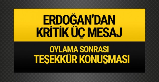 Cumhurbaşkanı Recep Tayyip Erdoğan, 16 Nisan'da milletin kendilerine bir mesaj verdiğini ifade ederek 2019'daki seçimlere kadar çok daha iyi çalışacaklarını söyledi. Erdoğan, 2019'a kadar hem büyüme hem de istihdam rakamlarını çok daha yukarıya çıkaracaklarını ifade etti.