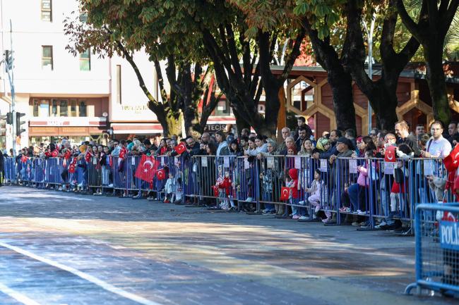 Sakarya, Cumhuriyetin 102. Yılını kutladı. Büyük bir coşku ve heyecan içinde kutlanan 29 Ekim Cumhuriyet Bayramı’nda kortej yürüyüşü ve geçit töreni, şehri bayraklarla donatarak bayram havası yarattı. Başkan Alemdar, yaptığı açıklamada, Cumhuriyetin 102. yılına sahip çıkarak, "Birlik ve beraberlik içinde nice 102 yıllara" dileğinde bulundu.Sakarya, 29 Ekim Cumhuriyet Bayramı'nı büyük bir coşku ve heyecan içinde kutladı. Büyükşehir Belediye Başkanı Yusuf Alemdar, tören alanındaki binlerce vatandaşla birlikte Cumhuriyetin 102. yılını coşkuyla karşıladı.Bayram coşkusuna ortak oldularCumhuriyet Bayramı'nın kutlama programlarına katılmak üzere sabah saatlerinde ilk olarak Sakarya Valisi Rahmi Doğan’a bayram tebriklerini ileten Başkan Alemdar, ardından şehrin en yoğun noktalarından biri olan Atatürk Bulvarı'na geçti.Şölen havasında bayramBurada gerçekleştirilen kortej yürüyüşü ve geçit töreni, şehir merkezinde adeta bir bayram şöleni havası yarattı. Başkan Alemdar, ellerinde bayraklarıyla bayram coşkusunu yaşayan binlerce Sakaryalıyla bir araya geldi. Geçit töreni sırasında vatandaşlar, bayraklarıyla bulvarı adeta tablo gibi süsledi.Nice 102 yıllaraTören sonrası açıklamalarda bulunan Başkan Yusuf Alemdar, “Cumhuriyetimizin 102. yılını kutlamanın gururunu ve coşkusunu hep birlikte yaşıyoruz. Bizlere bu toprakları ebedi yurt kılan, başta Gazi Mustafa Kemal Atatürk olmak üzere tüm silah arkadaşlarını, kahraman gazilerimizi ve aziz şehitlerimizi rahmet ve şükranla anıyorum. Bu anlamlı günde, tüm hemşerilerimin 29 Ekim Cumhuriyet Bayramı’nı kutluyor, birlik ve kardeşlik içinde nice 102 yıllara ulaşmayı temenni ediyorum” ifadelerini kullandı.Cumhuriyet Bayramı kutlamaları, kortejlerin ardından sona erdi. Başkan Alemdar, töreni izleyen vatandaşlarla günün anısına fotoğraf çektirerek bayram coşkusunu paylaştı.