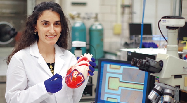 Dr. Canan Dağdeviren bir fizik mühendisi ama keşifleri tıbbi alanda… İlinois Üniversitesi’nden tam burslu olarak Malzeme Bilimi ve Mühendisliği bölümündeki doktora eğitimi kazanan Dr. Dağdeviren burada, esnek ve katlanabilir, deri üstüne yapıştırılabilir veya giyilebilir elektronik aletler üzerine çalışmalar yapmış. Bugünün tıbbını bol pijamaya benzeten Dr. Dağdeviren “Oysa bizim yapmak istediğimiz tıp, takım elbise tarzı, giyebileceğiniz, tam da üzerinize oturabilen bir tıp. Vücudunuzun her yerindeki bilgileri bir ara yüz vasıtasıyla size aktarabilen bir sistem yapmak istiyoruz. Bunu da alışılmışın dışındaki mühendislikle yapabiliriz” diyor. Dr. Dağdeviren, Massachusetts Institute of Technology (MIT)’de kendi adına kurulan 5 milyon dolarlık araştırma laboratuvarında, kalp dışında beyin ve mide ile ilgili çalışmalar da yapıyor. “Saç telinden 100 kat daha ince materyallerle çalışıyoruz” diyen Dr. Dağdeviren, çalışmalarını şöyle anlatıyor: “Kalbin kasılıp gevşemesi ile elektrik enerjisi üretiliyor. Yaptığımız batarya sayesinde kalbin kasılıp gevşemesi ile oluşturduğumuz elektrik gücünü kablosuz şekilde direkt kalbe tekrar gönderebiliyoruz. Günümüzdeki kalp pilleri her 7-10 yıl içinde değiştirilmek durumunda çünkü içindeki batarya bitiyor. Nörolojik hastalıkların tedavisinde kullanılabilecek bir başka çalışmamız ise beyinle ilgili. Beynin en ücra köşelerine kadar ulaşabilen iğne şeklinde bir alet yaptık. Şu an ağız ya da damar yoluyla aldığımız ilaçları bu platform sayesinde beynin istenilen noktasına gönderebiliyoruz. Böylece ilaçlar sadece o noktayı etkiliyor. Normalden 6 bin kat daha az ilaçla daha iyi etki sağlanabiliyor. Bu platform hayvanlar üzerinde deneniyor. Beyin üzerinde yaptığımız bir başka çalışma da farelerin beynine gönderdiğimiz bilgisayar komutlarıyla onların hareketlerini kontrol etmek. Bu da bazı psikiyatrik hastalıklarda hastanın modunu değiştirmek için kullanılabilir.” Teknoloji devleri peşinden koşuyor