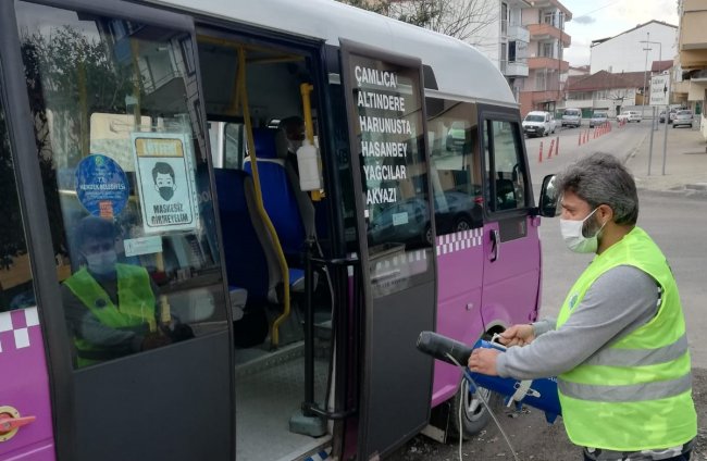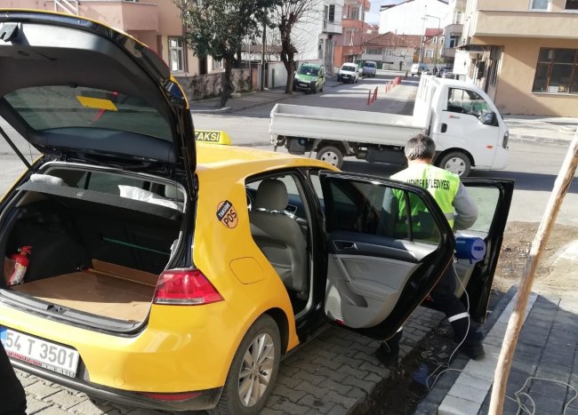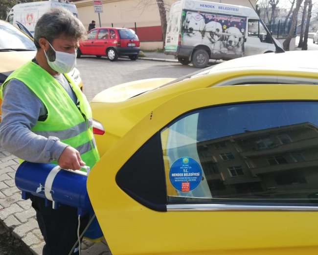 EKİPLER HER YERİ DEZENFEKTE EDİYORHendek Belediyesi, KOVİD-19 tedbirleri kapsamında halkın yoğun olarak kullandığı yerleri ve toplu taşıma araçlarını düzenli olarak dezenfekte etmeye devam ediyor.EKİPLER HER YERDEHendek Belediyesi, dünya genelinde etkisini sürdüren KOVİD-19'a karşı belediye olarak tedbirler almaya devam ediyor. İlçe genelinde kamu binaları başta olmak üzere parklar, duraklar, berberler, kuaförler ve halkın yoğun olarak kullandığı noktalarda dezenfekte çalışmaları sürüyor. Bu kapsamda ilçemizdeki toplu taşıma araçlarında da düzenli olarak dezenfekte çalışması yapılıyor. Yapılan açıklamada, “ Salgınla mücadele kapsamında dezenfektan çalışmalarımız ara vermeden devam edilecektir” denildi.